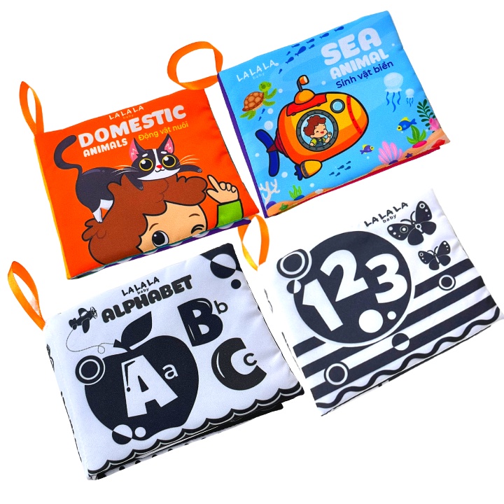 Sách Vải Cho Bé Sơ Sinh 8 Mặt Sột Soạt An Toàn Cho Trẻ - Cỡ Mini 12x12cm - Hiệu Lalala Baby