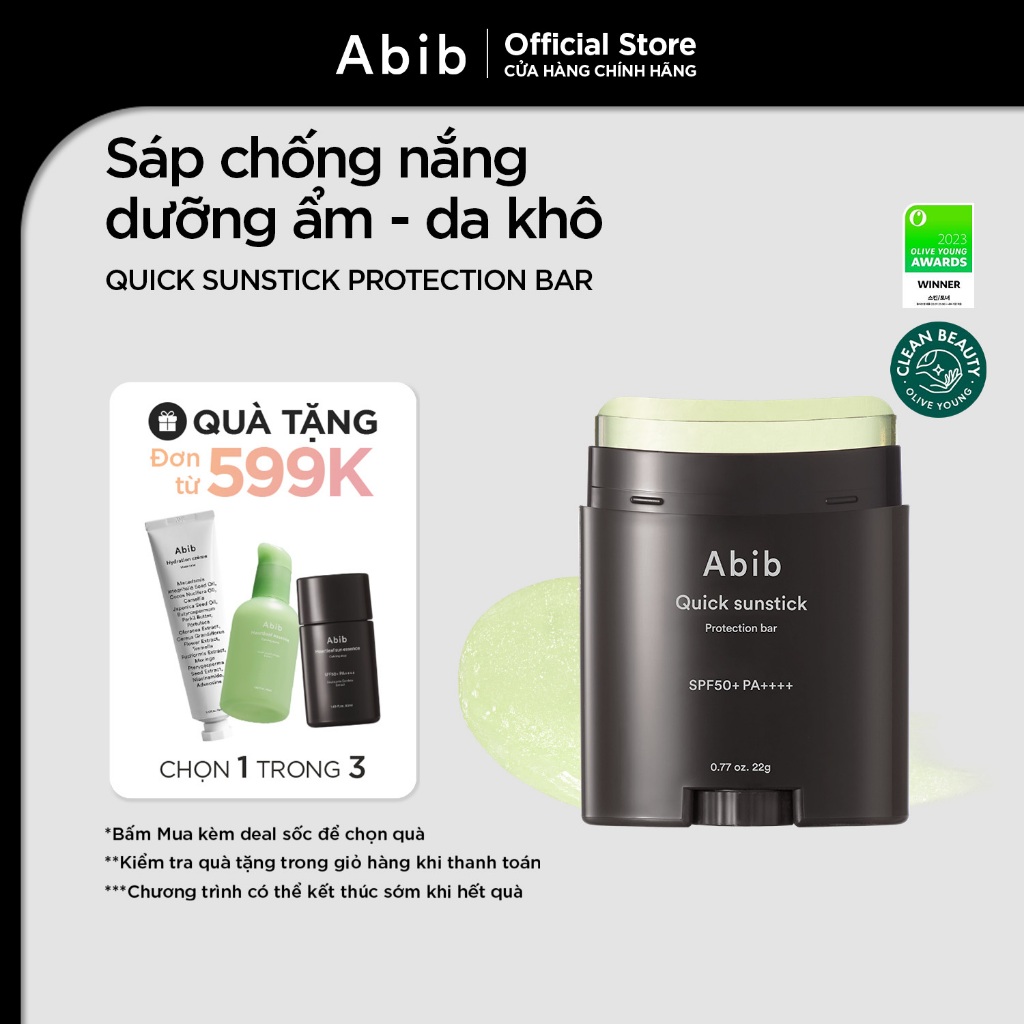 Sáp chống nắng dưỡng ẩm, không mùi, mỏng nhẹ Abib Quick Sunstick Protection Bar SPF50+ PA++++ 22g