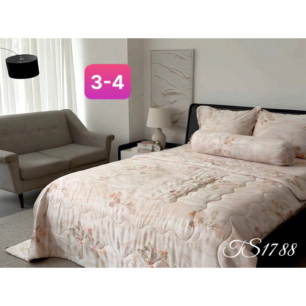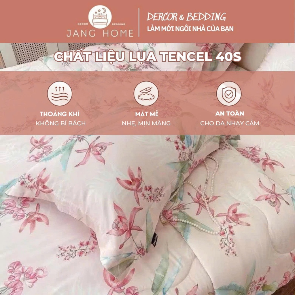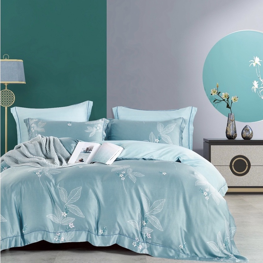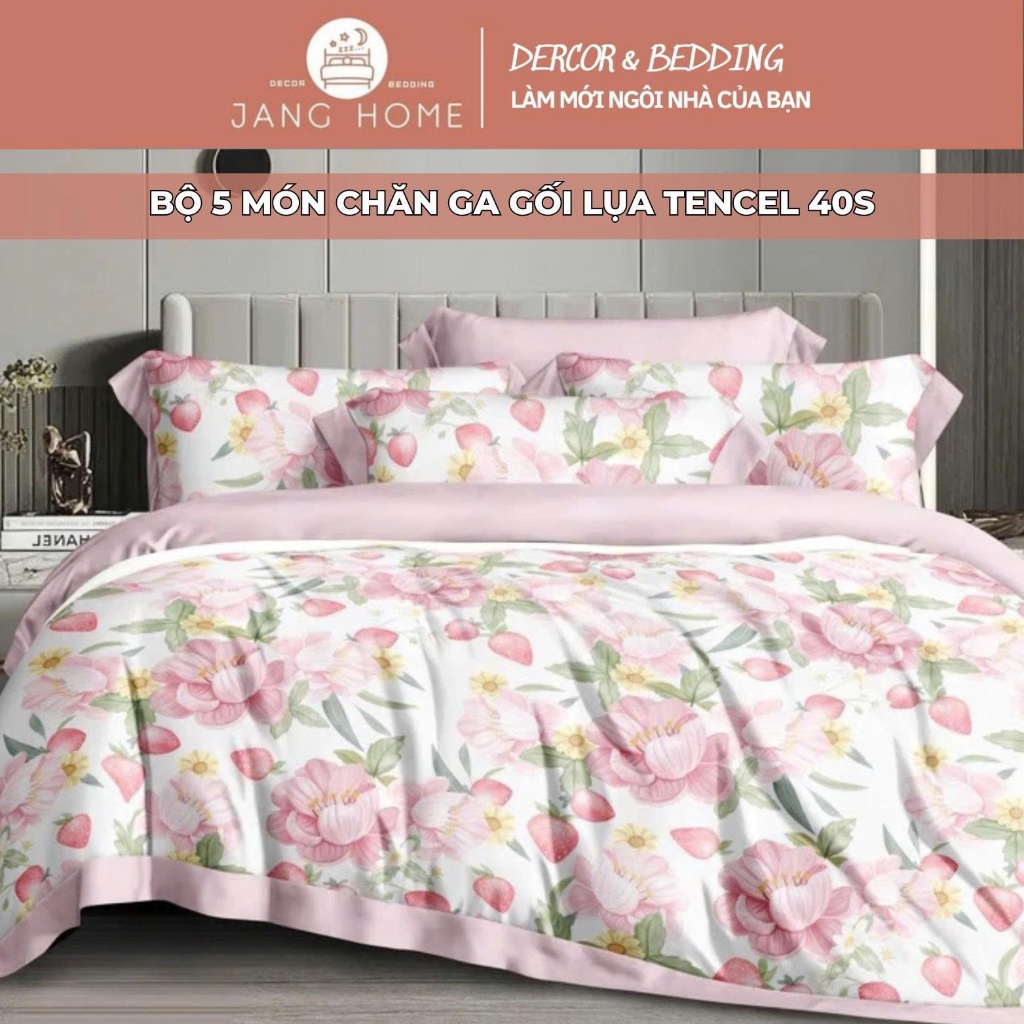 Sét chăn ga gối lụa Tencel 40s, Bộ 5 món ga gối mền cao cấp họa tiết sang trọng thanh lịch
