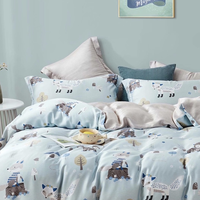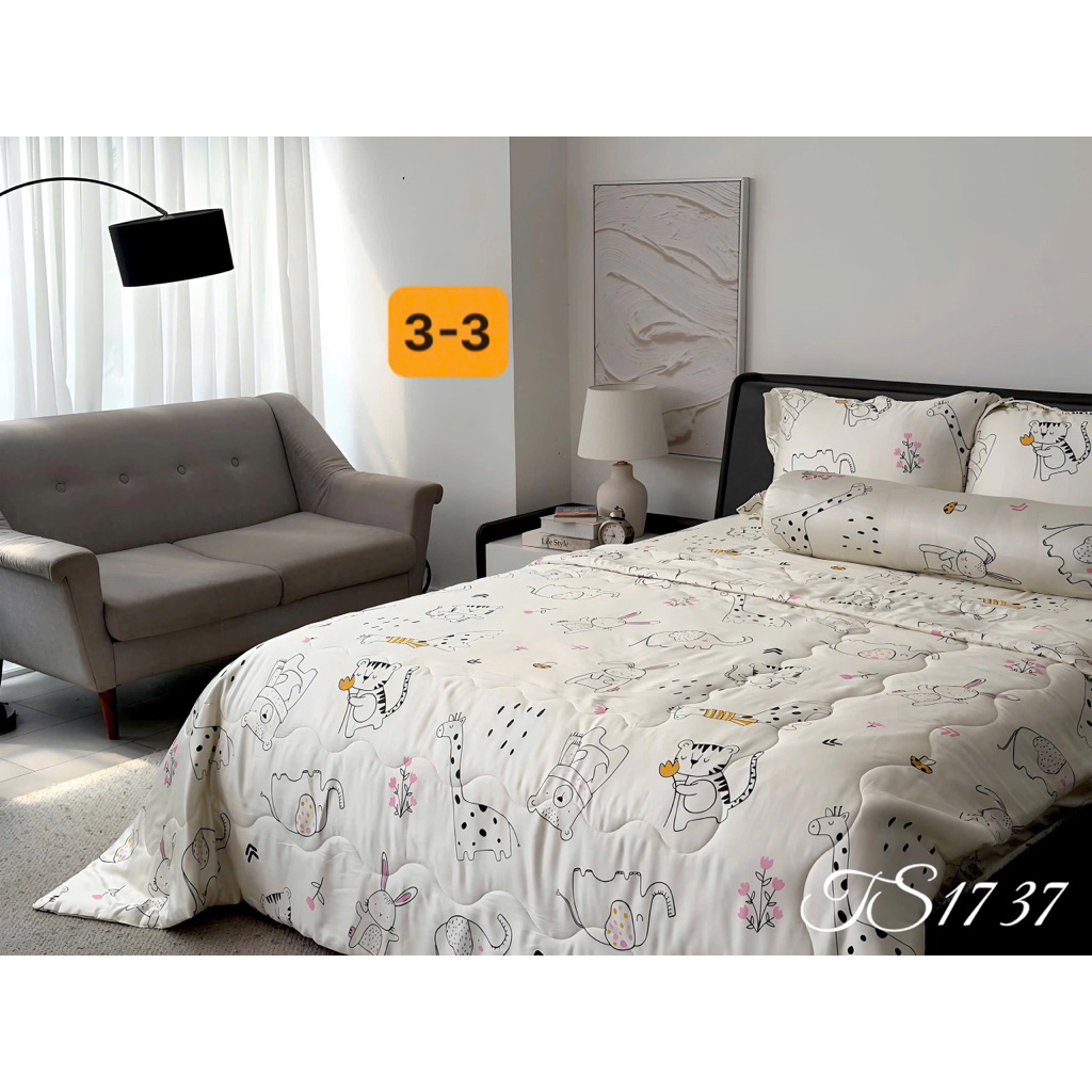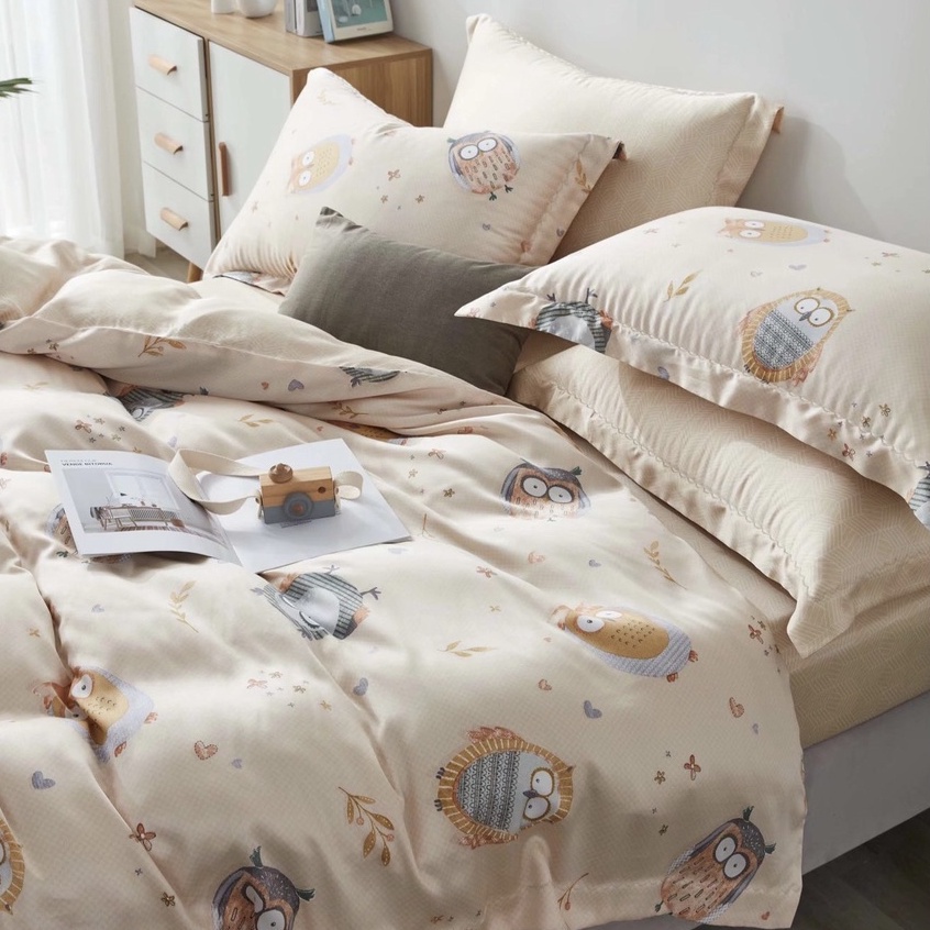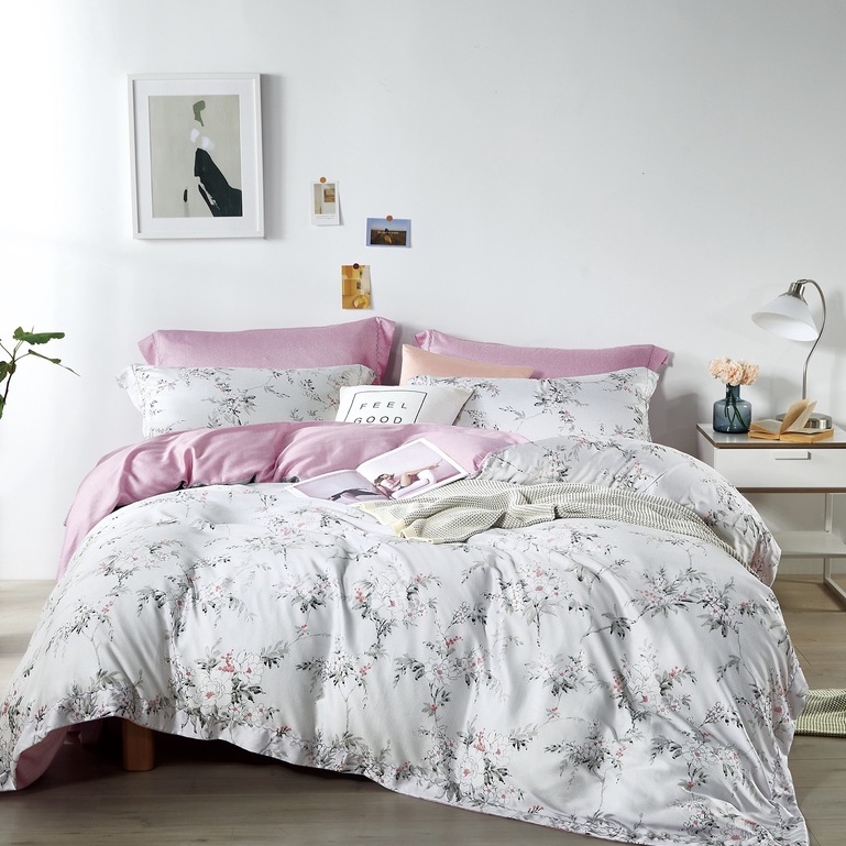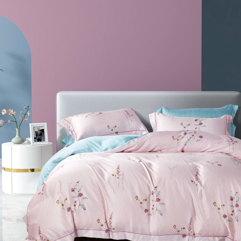 Sét chăn ga gối lụa Tencel 40s, Bộ 5 món ga gối mền cao cấp họa tiết sang trọng thanh lịch