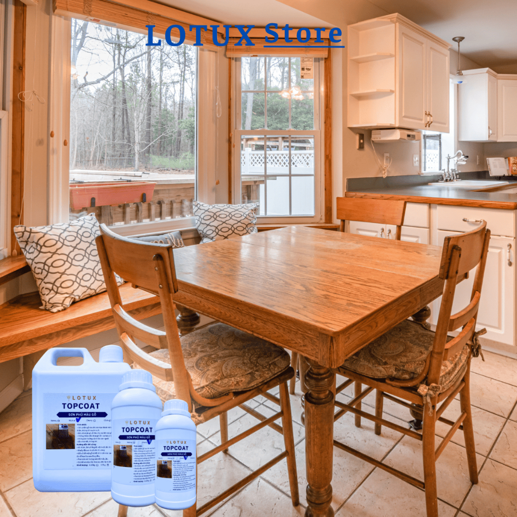 Sơn phủ bóng gỗ nhiều màu gốc acrylic chống mốc, chống thấm không mùi, dễ thi công Lotux Topcoat
