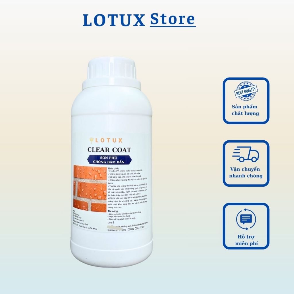 Chống thấm, sơn phủ bóng, chống bám bụi, dễ dàng vệ sinh acrylic gốc nước, Lotux Clear Coat