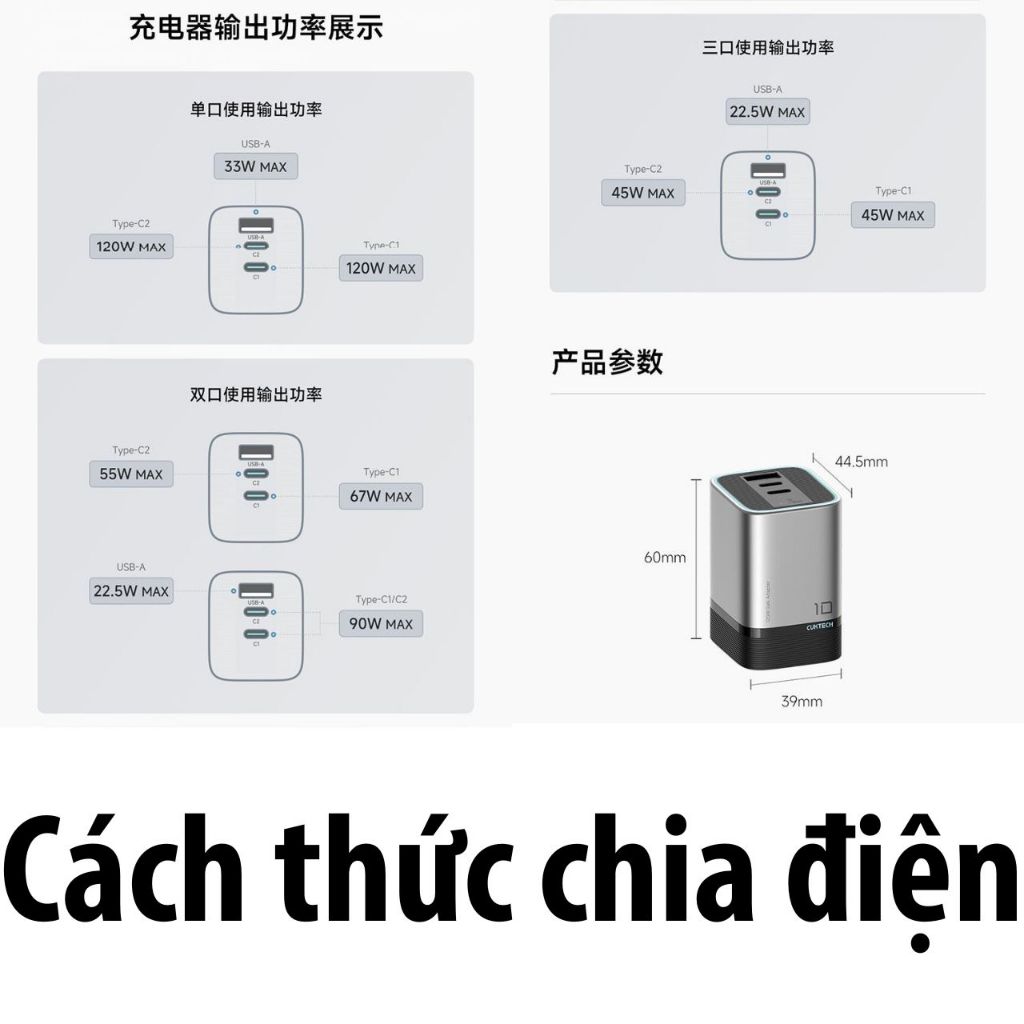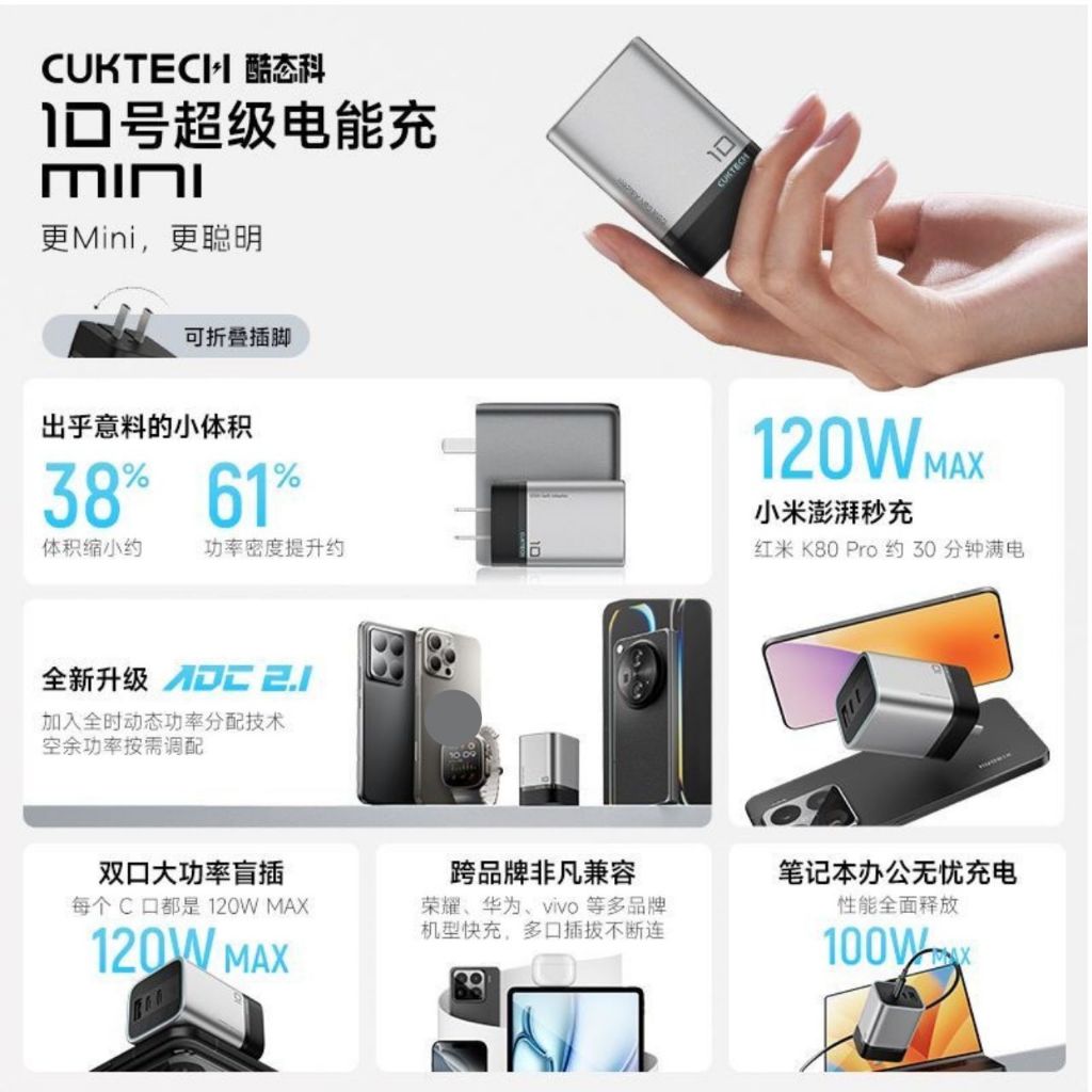 Sạc Cuktech 10 Mini 120w 3 Cổng (2C+1A) Mi turbro 120W PD3.0/PPS2.0/QC AD1203P -Bảo Hành 18 Tháng