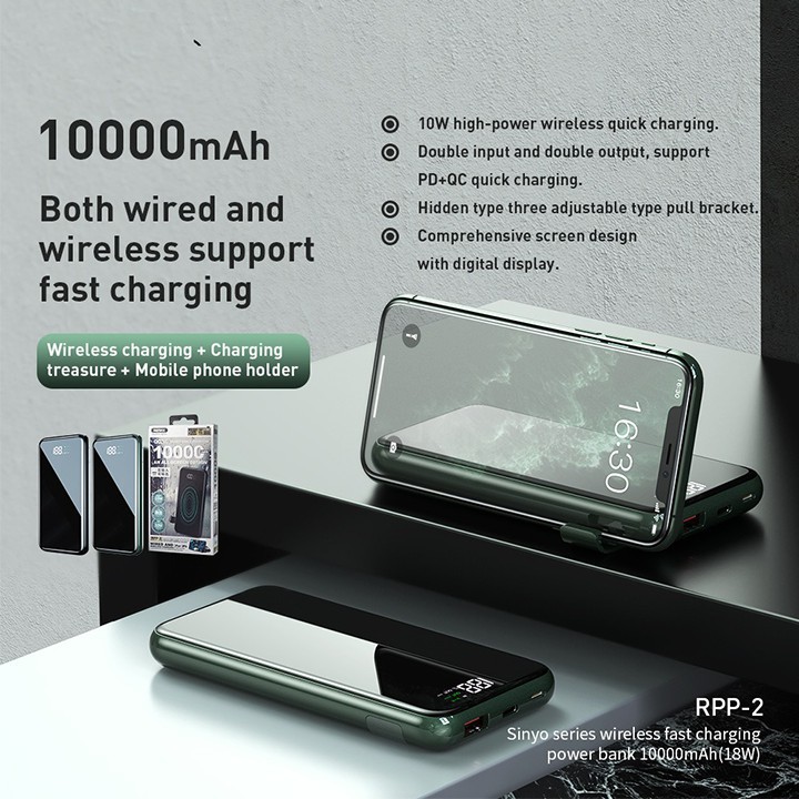 Sạc Dự Phòng Không Dây Remax RPP-2 Sinyo Series 10000mah sạc nhanh Fast Charging