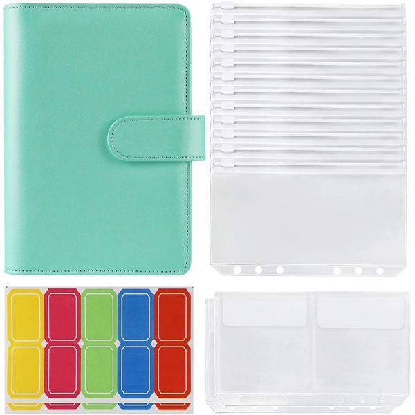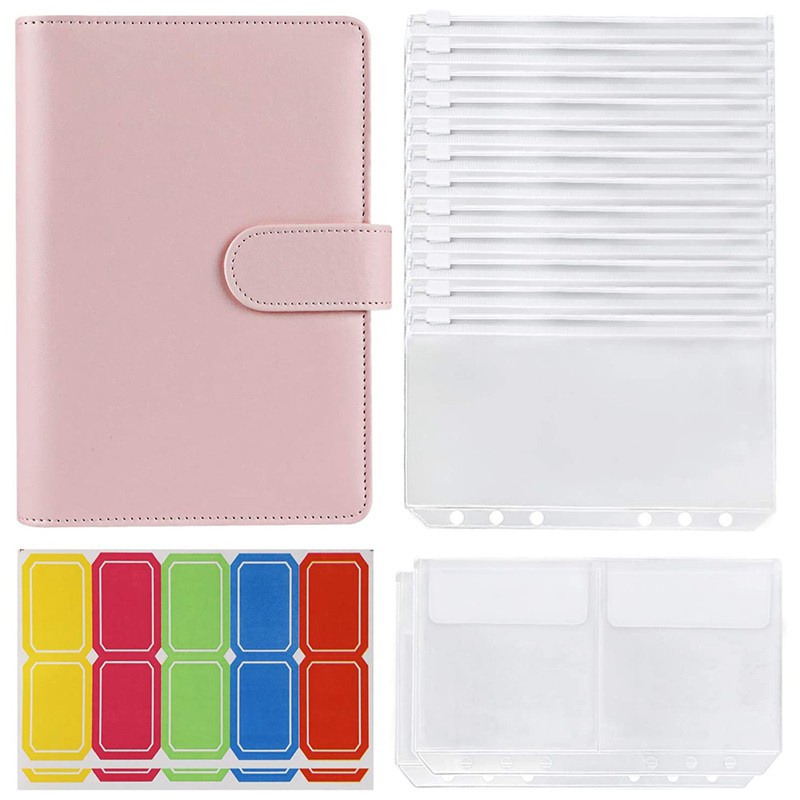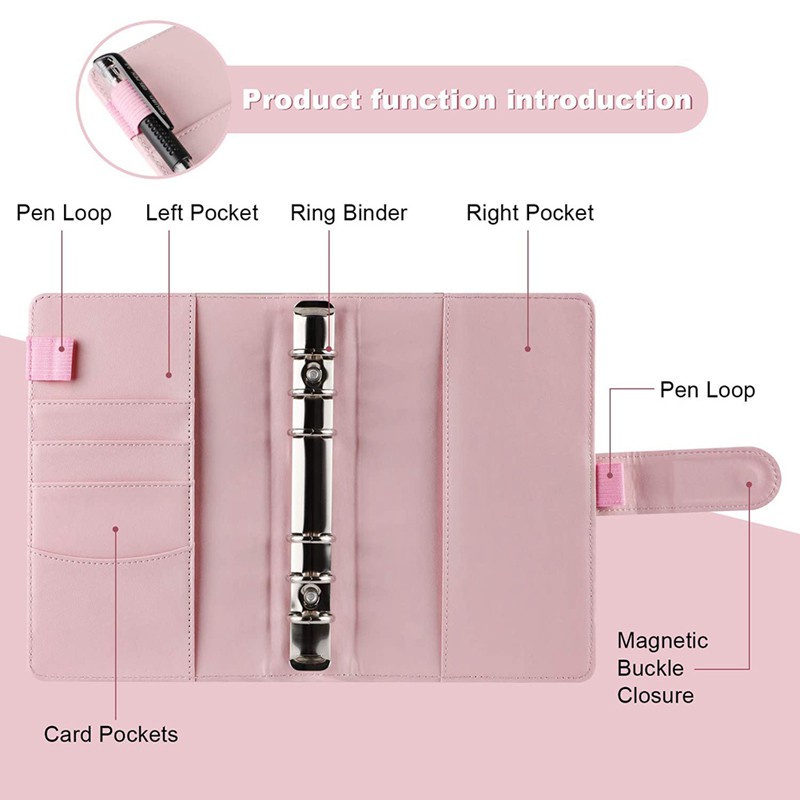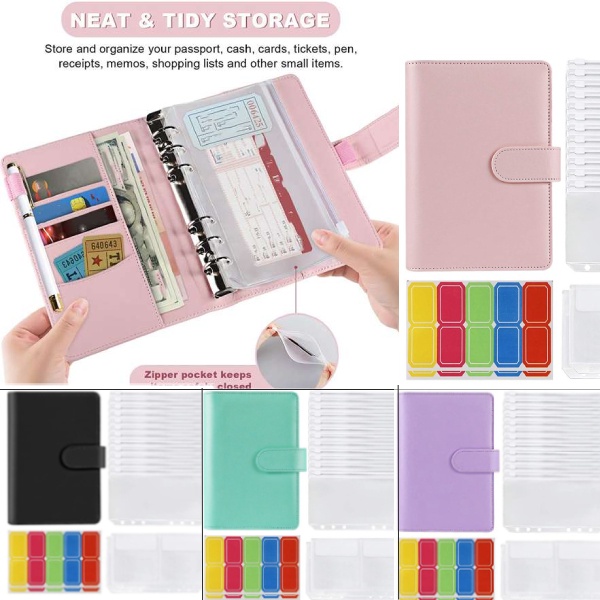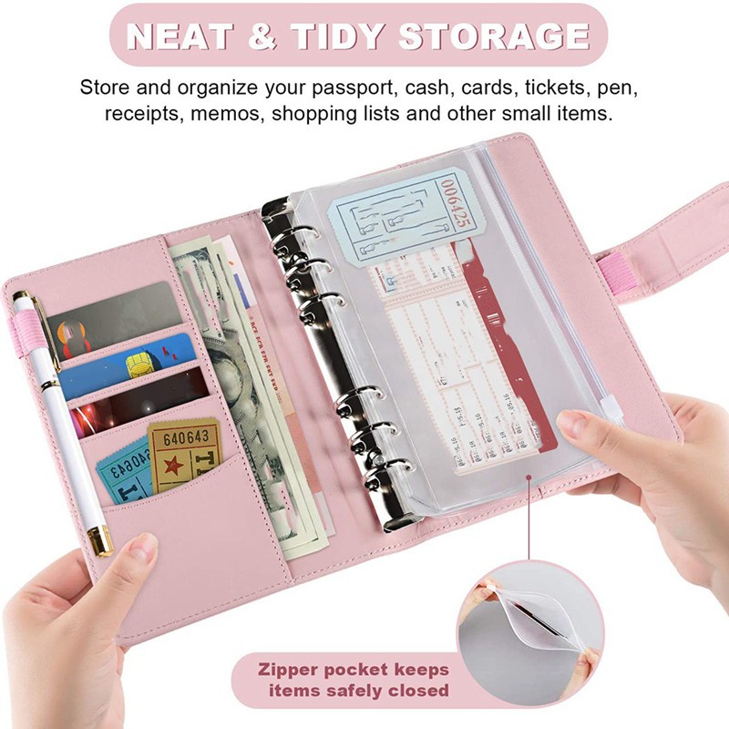 Sổ còng 6 lỗ bìa da A6 dùng để đựng tiền tiết kiệm với thiết kế túi zip