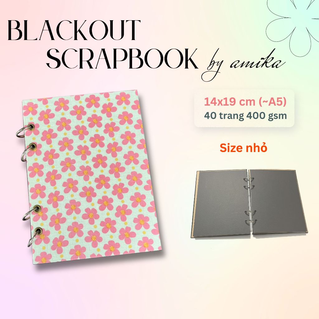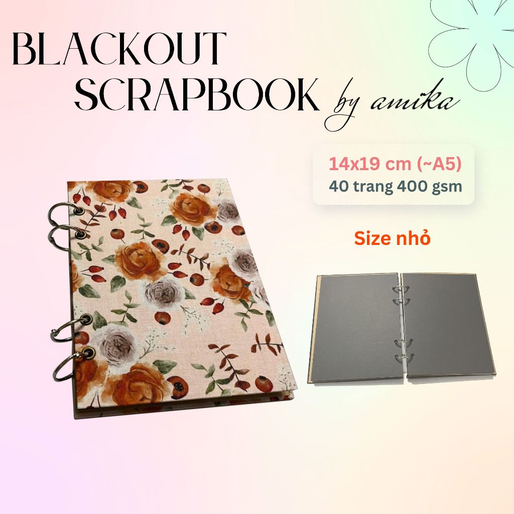 Sổ còng BLACKOUT SCRAPBOOK dày - Album dán ảnh handmade - 40 trang - size nhỏ 14 x 19 cm (xấp xỉ A5)