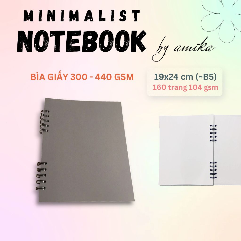 Sổ lò xo 19x24 cm ~B5 - Bìa trơn - Ruột chấm bi / kẻ ngang/ ô vuông / trơn (Spiral Notebook)