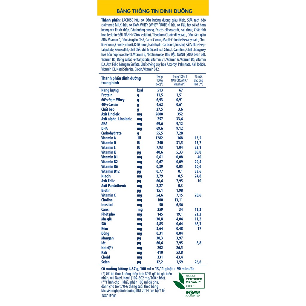 Sữa Bột Nestle NAN ORGANIC Số 1 - Hộp 900gr