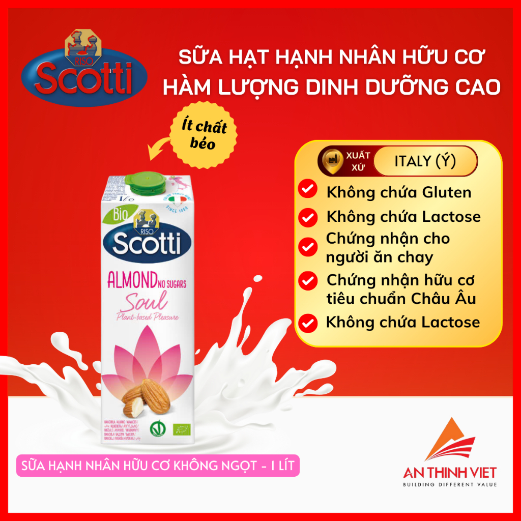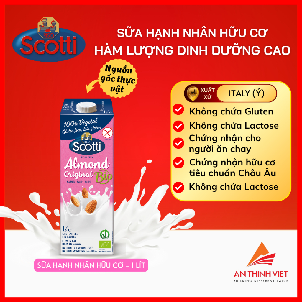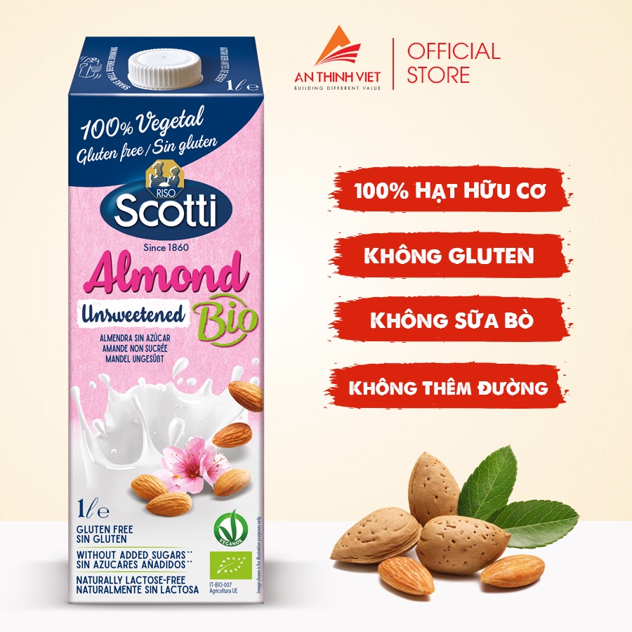 Sữa Hạt Hạnh Nhân Hữu Cơ Không Đường Riso Scotti - Unsweetened Almond Drink 1L