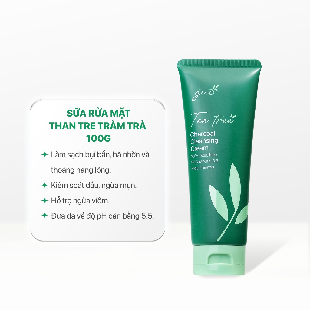 Sữa Rửa Mặt Than Tre Tràm Trà An Toàn Cho Bà Bầu pH 5.5, Không Sulfate, Kiềm Dầu, Ngừa Mụn Hiệu Quả GUO 100g