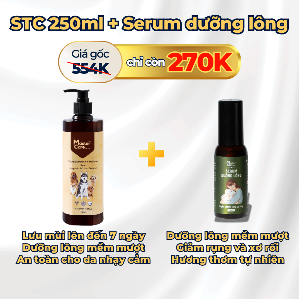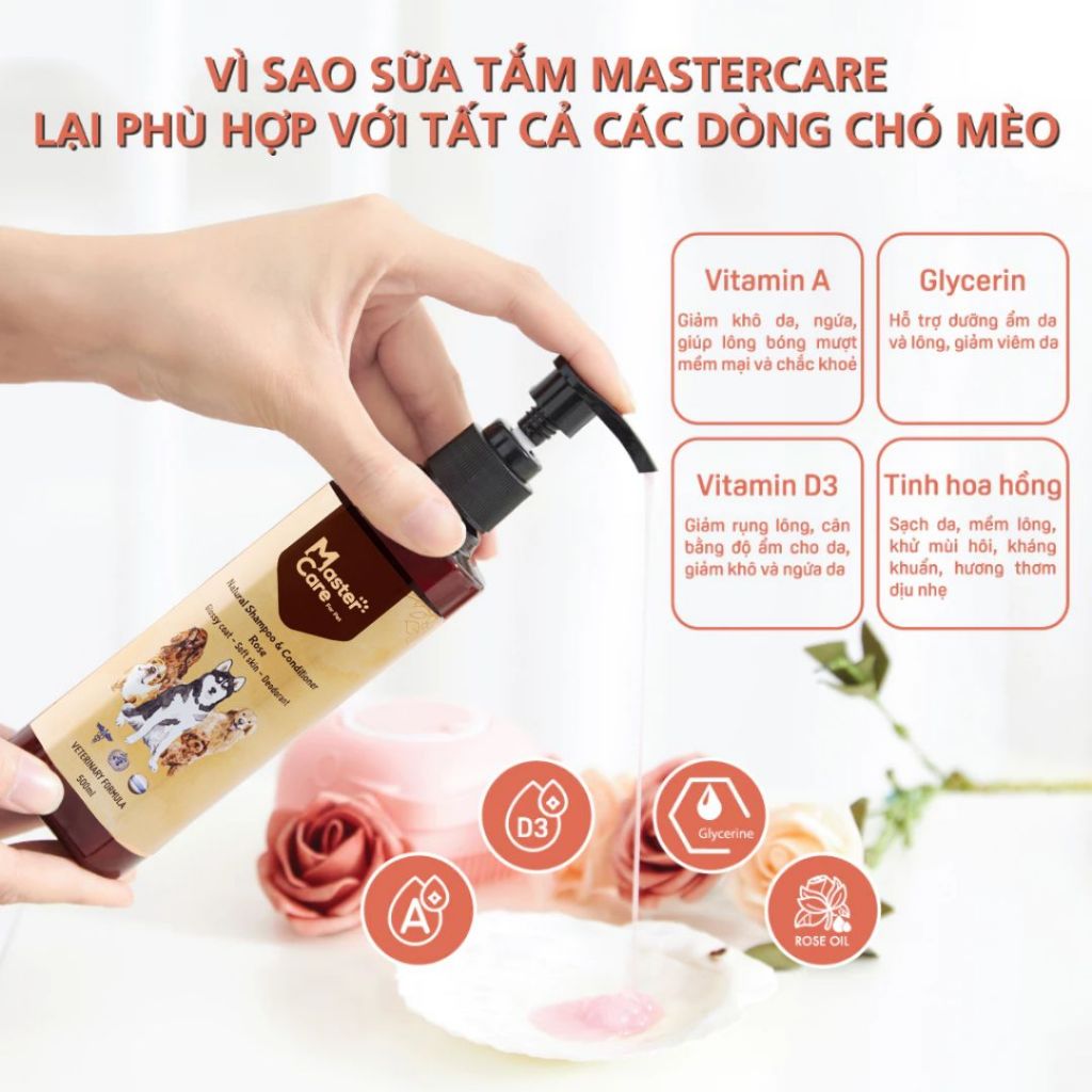 Sữa Tắm Cho Chó Ngăn Ngừa Ve Ghẻ Nấm Khử Mùi Hôi Và Làm Mượt Lông Lưu Hương 7 Ngày MASTERCARE 250 ML