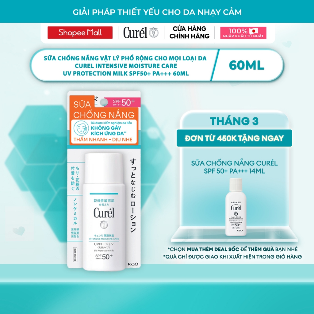 Sữa chống nắng Curel UV Protection Milk SPF 50+ PA+++ 60ml