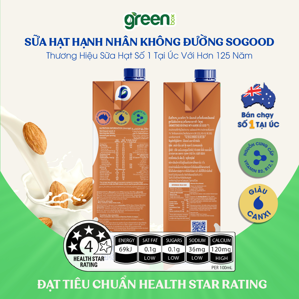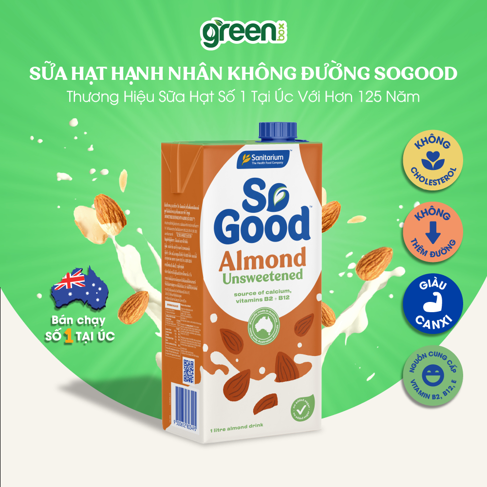 Sữa hạnh nhân không đường So Good 1L calo thấp, bổ sung canxi và vitamin, phù hợp người ăn kiêng