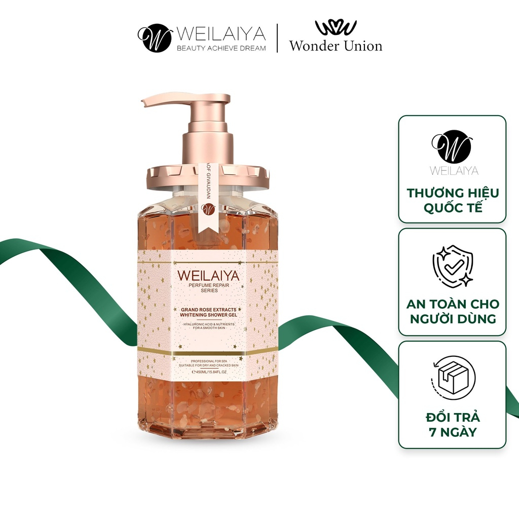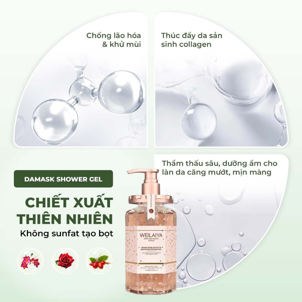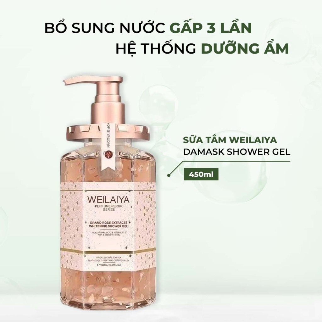 Sữa tắm trắng da thơm lâu Damask Weilaiya Shower Gel cánh hoa hồng làm sạch toàn thân 450ml