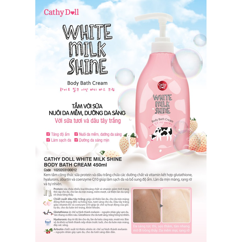 Sữa tắm sữa bò Cathy Doll White Milk Shine Body Bath Cream 450ml dưỡng da mềm mịn trắng sáng