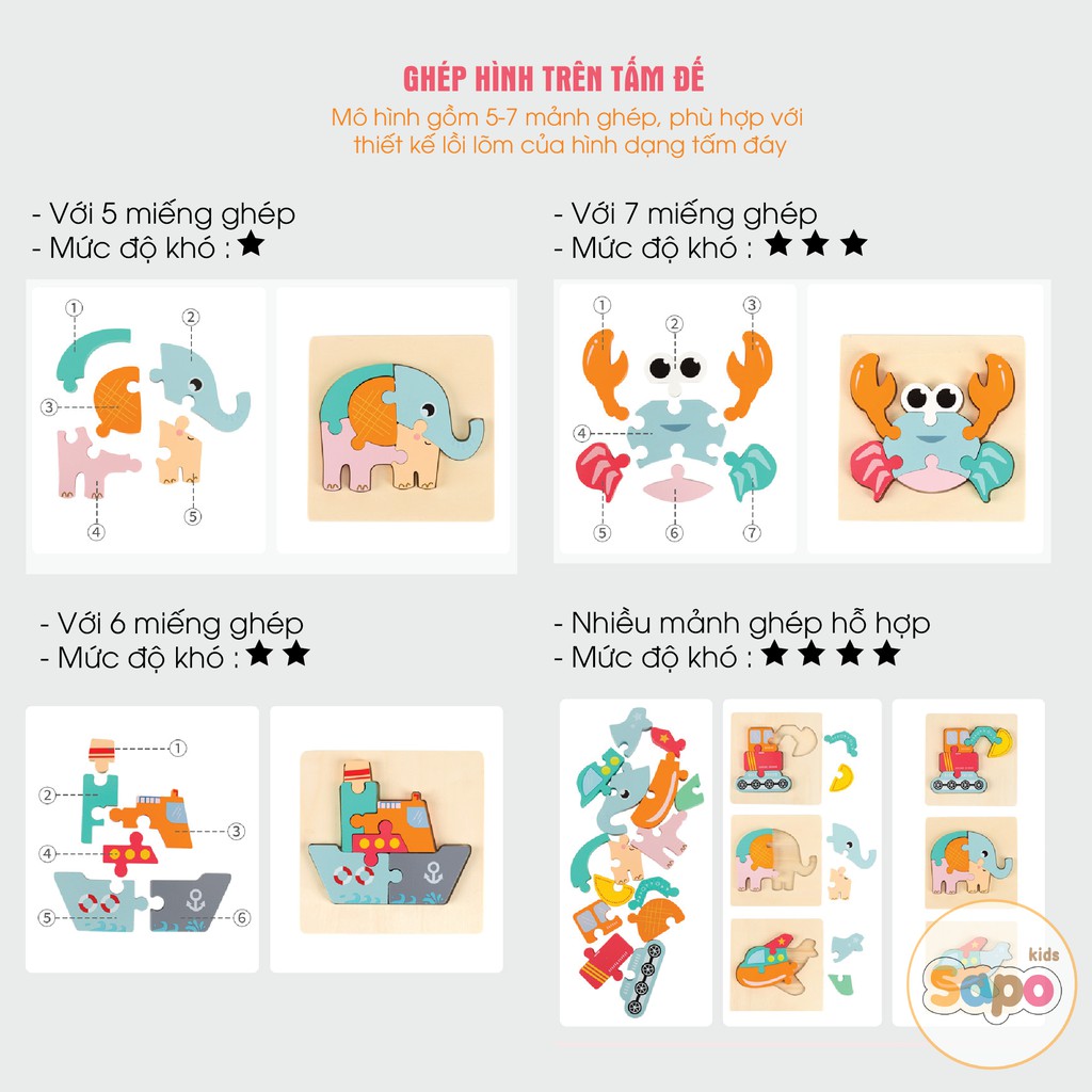 Đồ Chơi Ghép Hình Gỗ Nổi 3D, Tranh Ghép Hình Cho Bé Hàng Cao Cấp