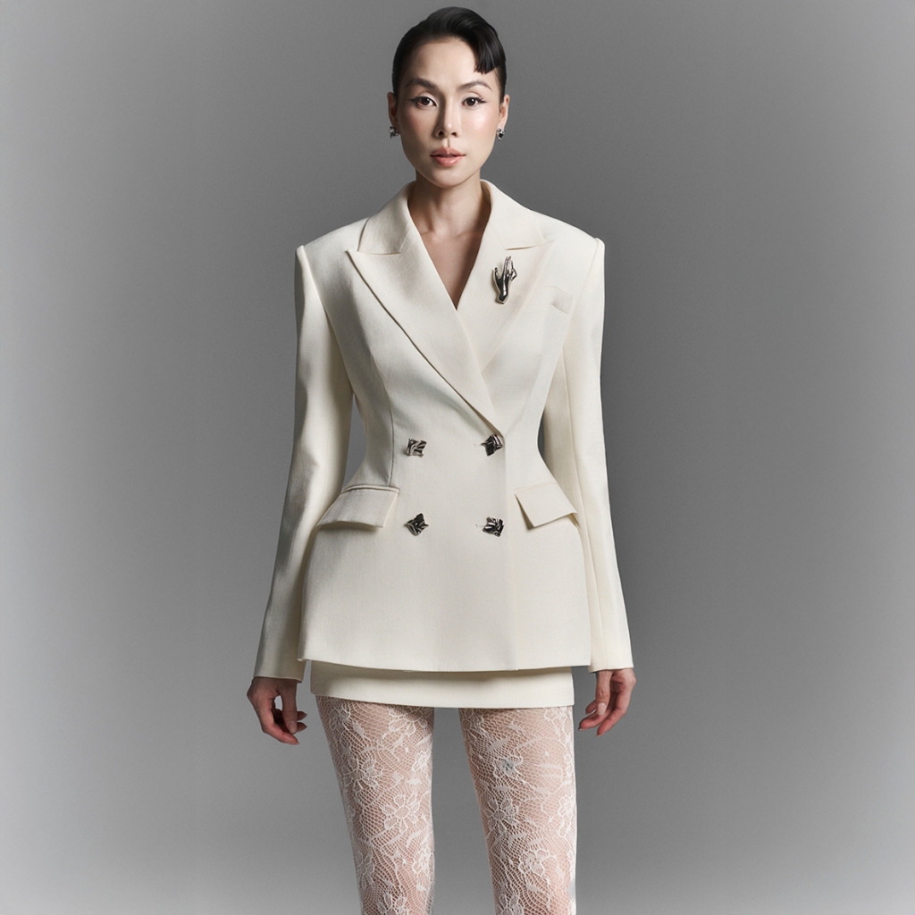 SANDY - Áo vest hông cong 2 hàng cúc mix chân váy ngắn