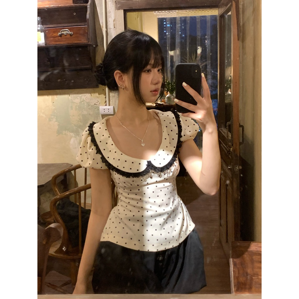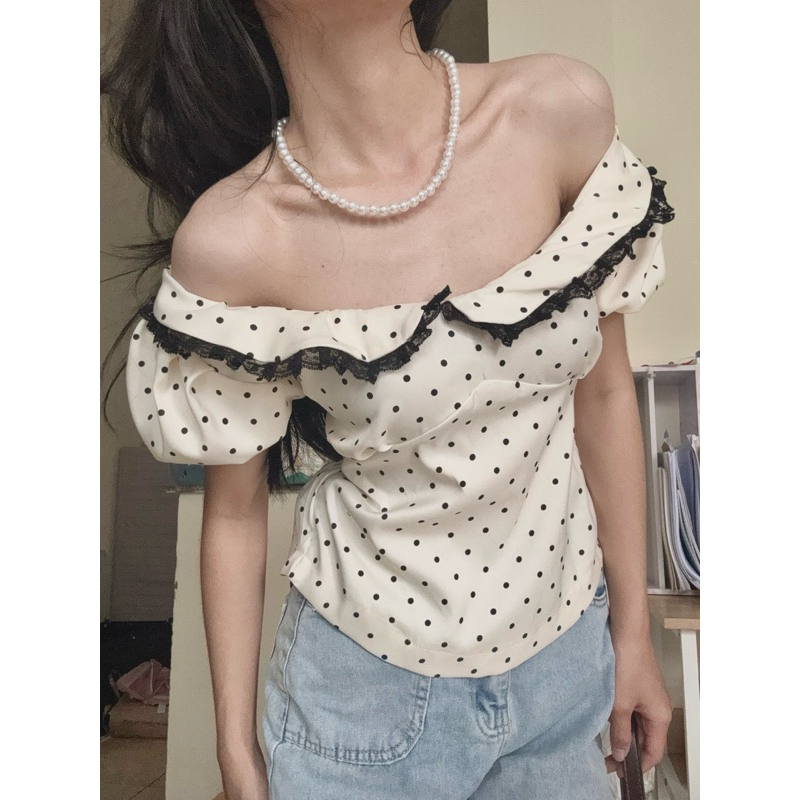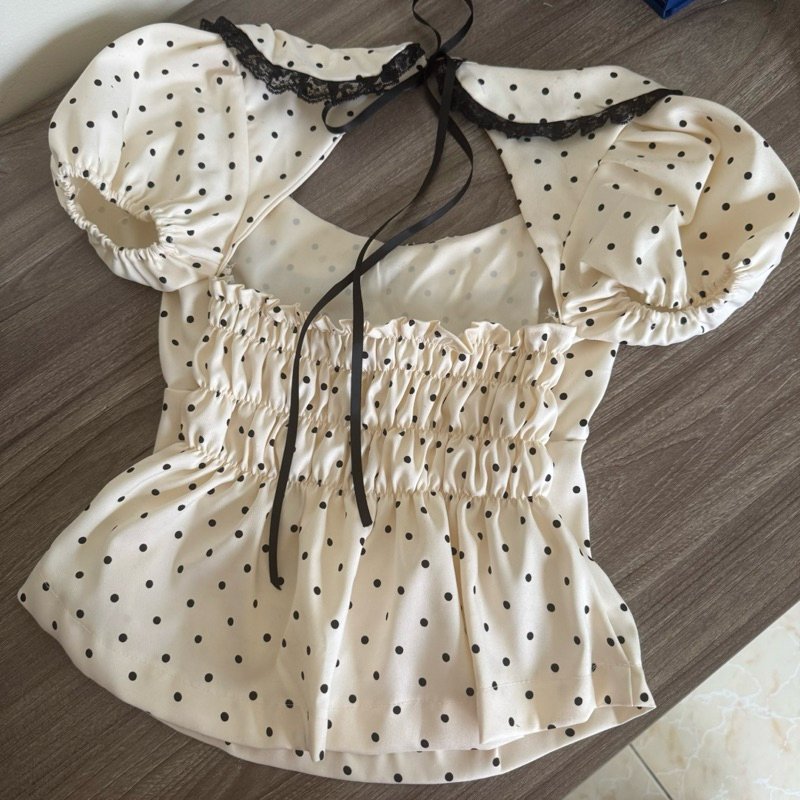 SMEIÁ | Áo kiểu cổ sen chấm bi tay phồng chiết eo- Fanni Top- Polka dot top
