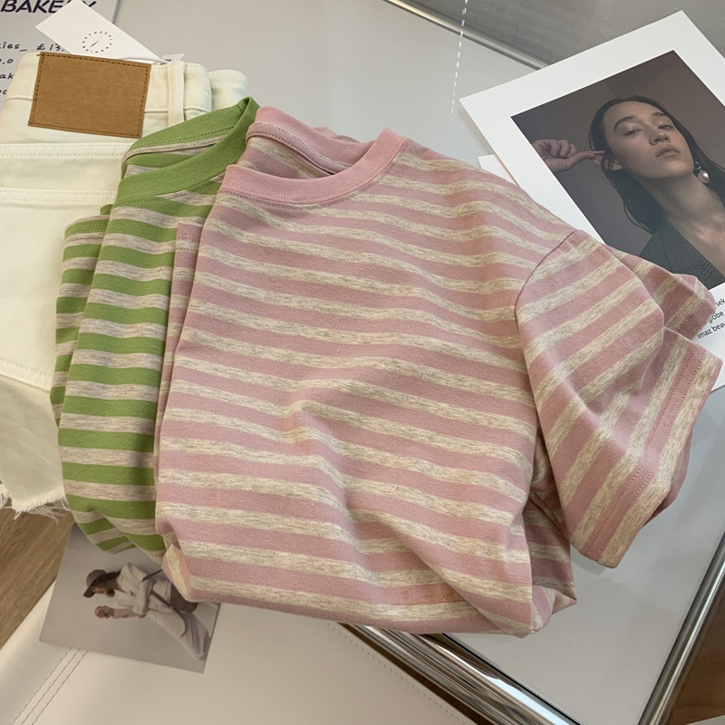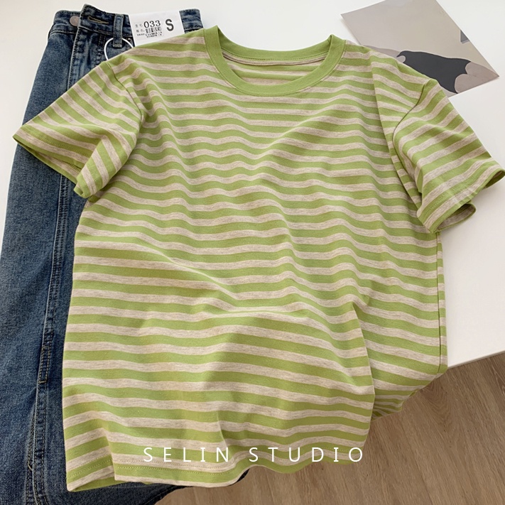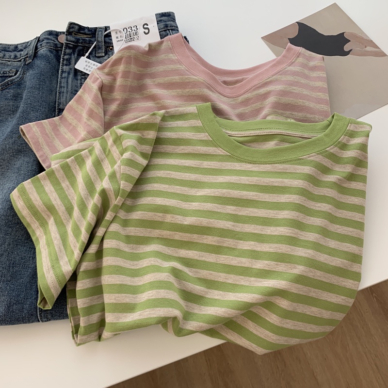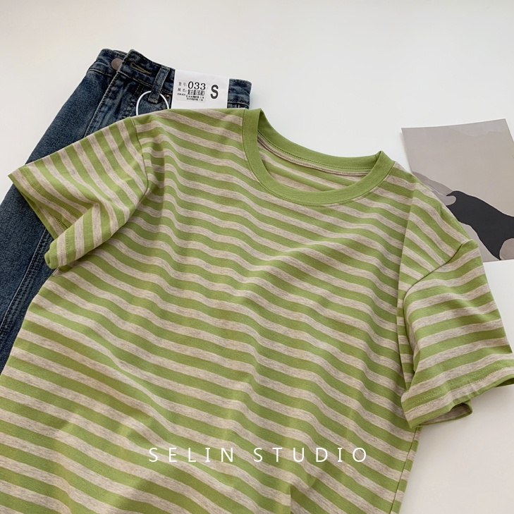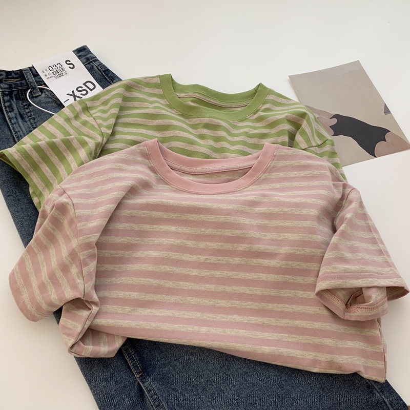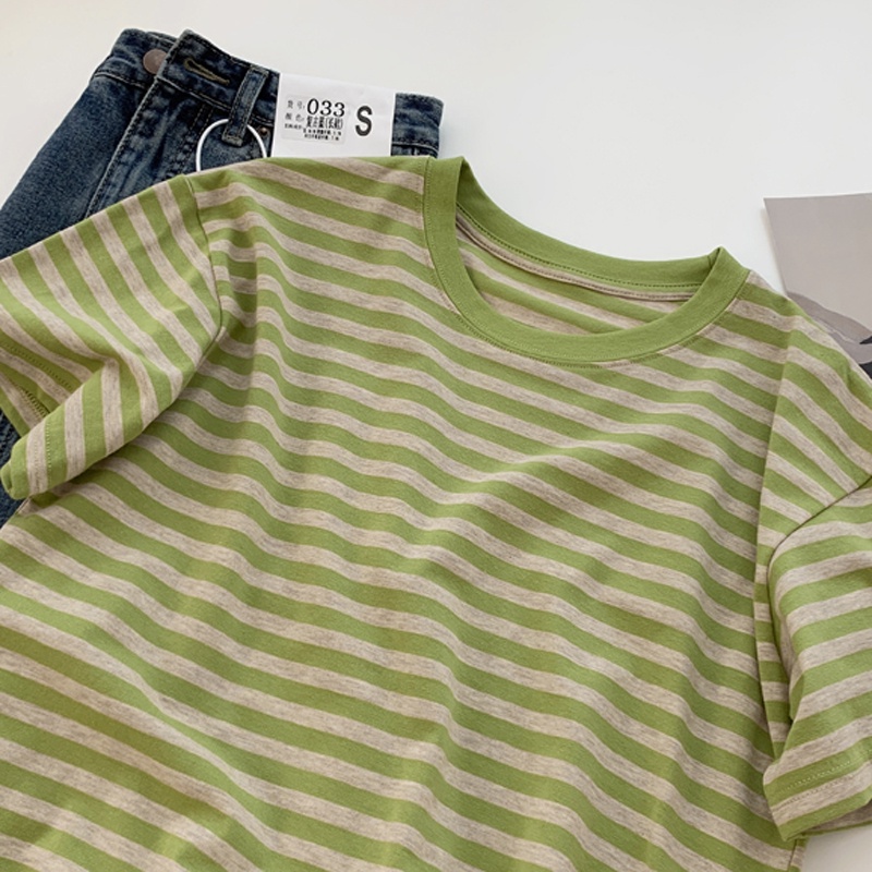 SUXI Áo Thun Cotton Tay Ngắn Dáng Rộng Họa Tiết Kẻ Sọc Đơn Giản Thời Trang Mùa Hè Cho Nữ