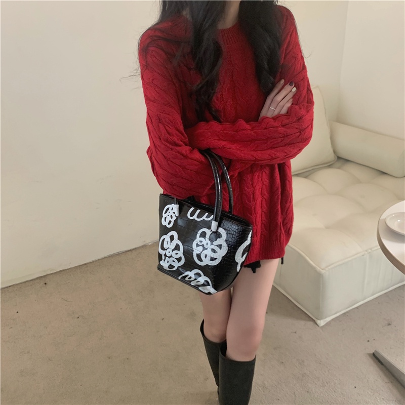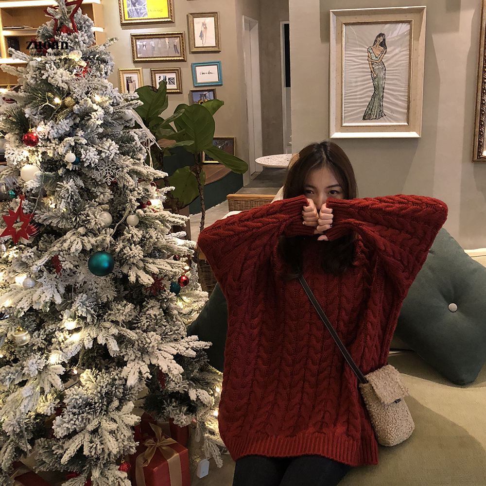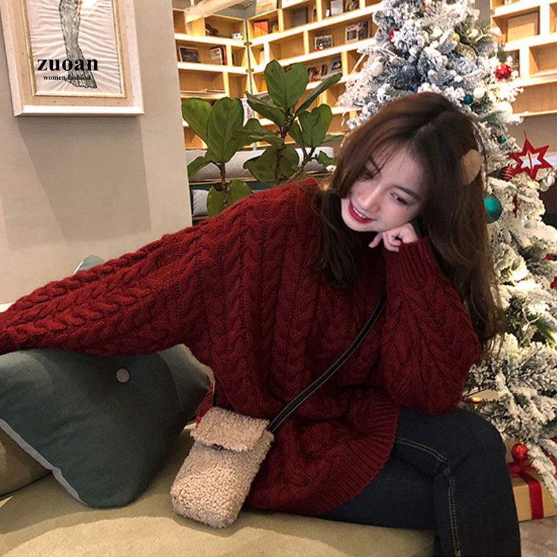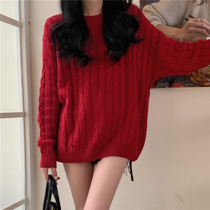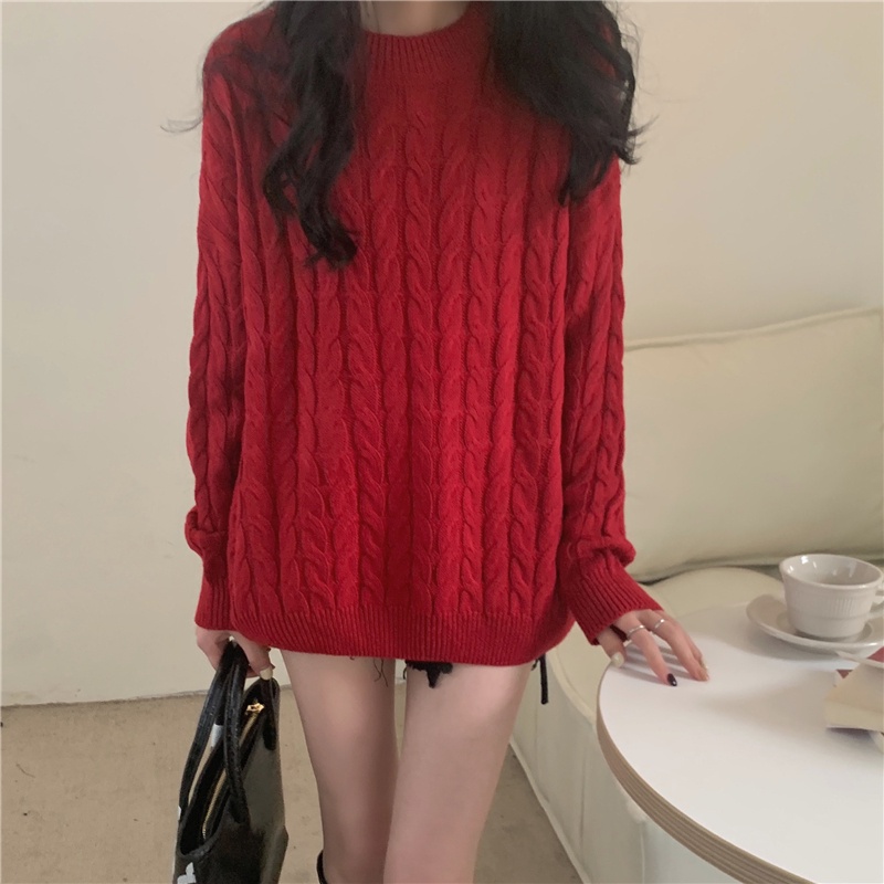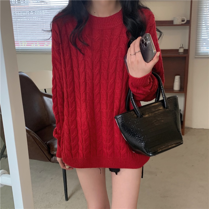 SUXI Áo len màu trơn dáng rộng cổ tròn thời trang phong cách retro dành cho nữ