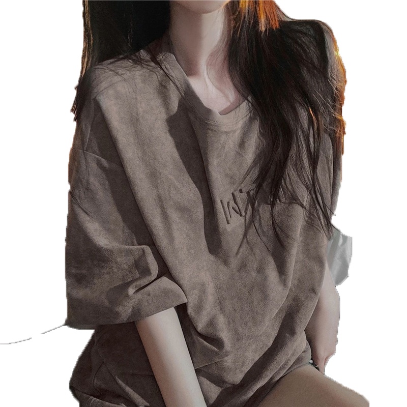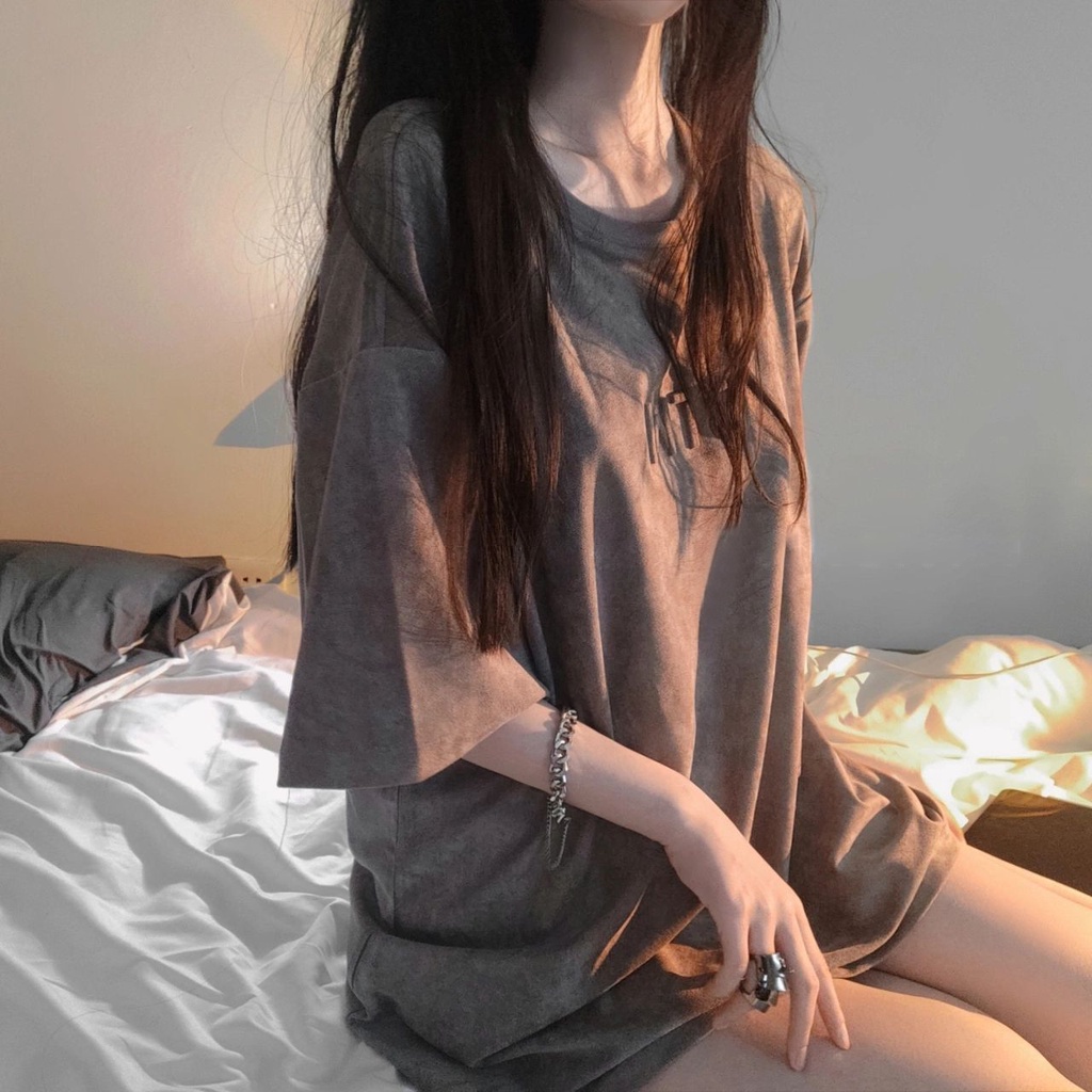 SUXI Áo thun tay ngắn cổ tròn màu sắc đơn giản phong cách mùa hè thời trang cho nữ