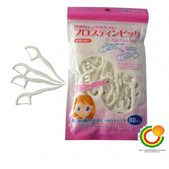 [Ảnh thật] Chỉ nha khoa nhật Dr.Polir Floss Picks gói 80 tăm sợi chỉ dẹp như hình đầu tiên
