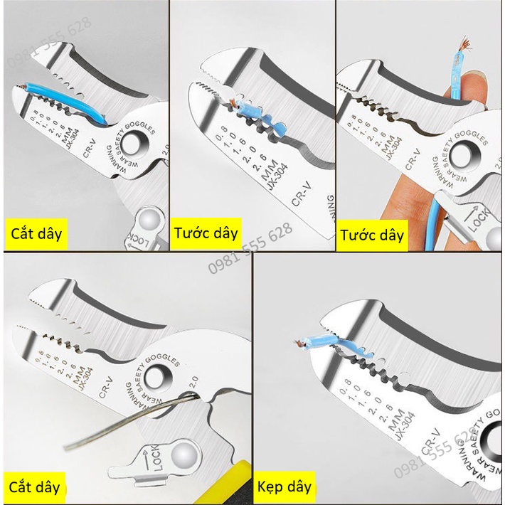 Kìm cắt tuốt uốn dây điện đa năng có khoá an toàn