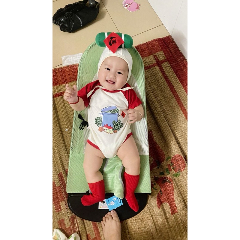 Set bodysuit kèm mũ bánh chưng, bánh tét mặc ngày tết mặc hè cho em bé sơ sinh thoáng mát mềm mịn