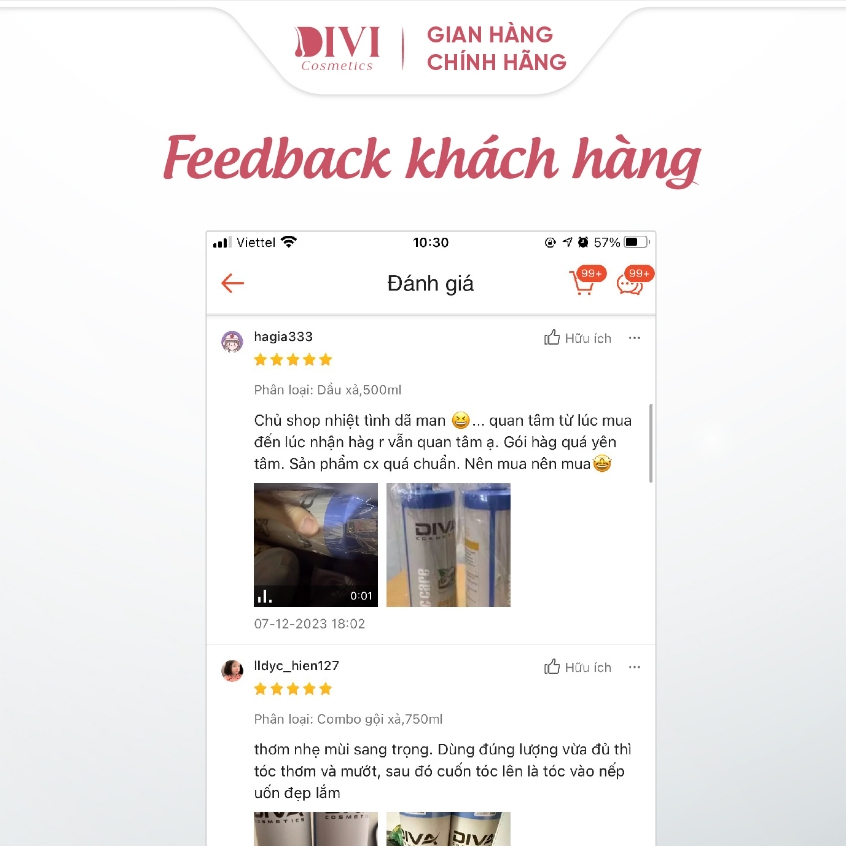 Bộ Gội - Xả DIVA Protect Color Giữ Màu Tóc Nhuộm, Phục Hồi, Mềm Mượt - Hương Thơm Nước Hoa 500ml/750ml - Mỹ phẩm Divi