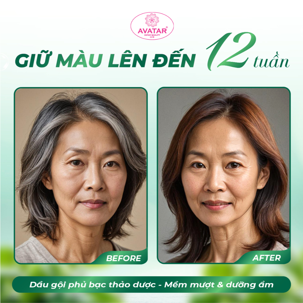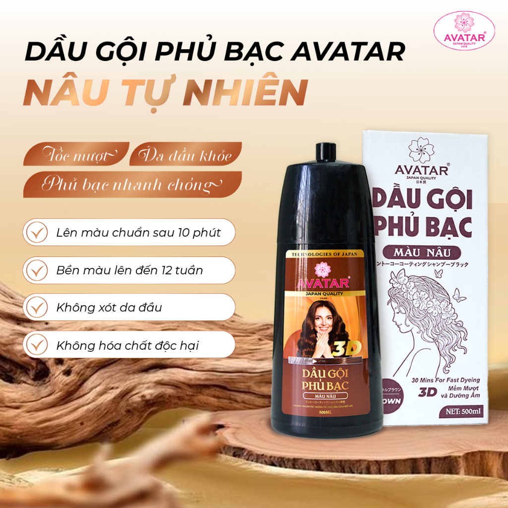 Lược Gội Phủ Bạc Avatar Brown Hair 500ML - Dạng Lược Thông Minh, Màu Nâu Tự Nhiên, Kéo Dài Tuổi Xuân Cho Mẹ