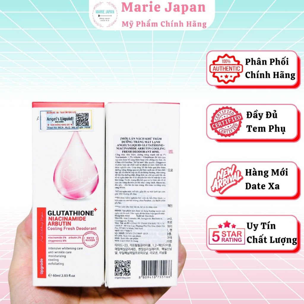 [CHE TÊN] Lăn Khử Mùi Trắng Da Giảm Thâm Nách Glutathione Angel’s Liquid - 60ml