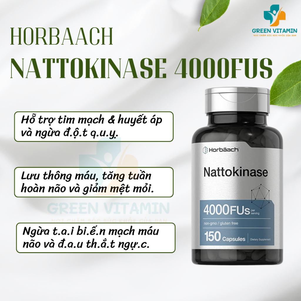 Horbaach Nattokinase 4000 FUs - Viên uống hỗ trợ sức khỏe tim mạch và tuần hoàn 150 viên