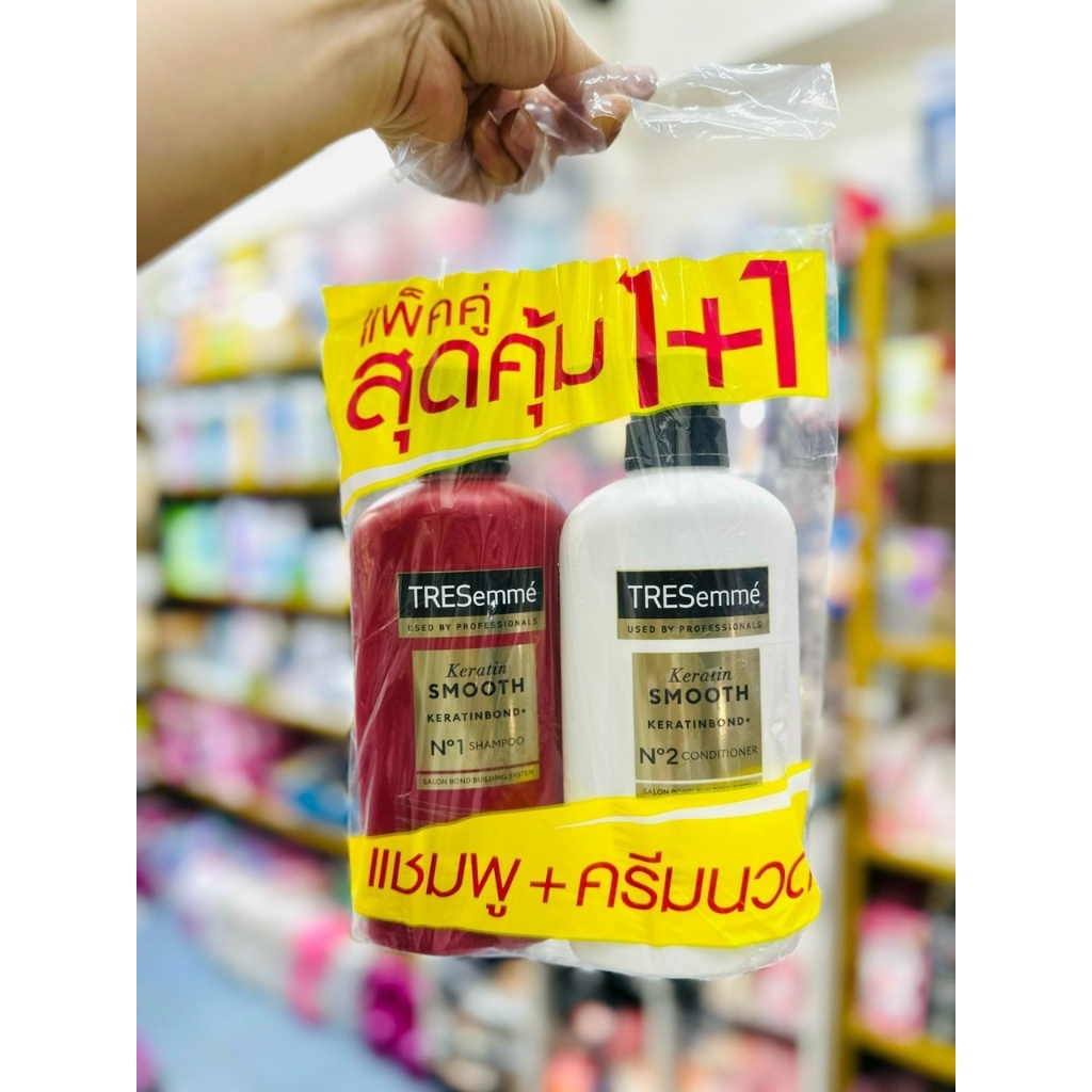 Cặp gội xả Tresemme Kerathin Smooth 370ml [MÀU ĐỎ] Dưỡng Tóc Khô Xơ Rối - Npp Mộc Trà