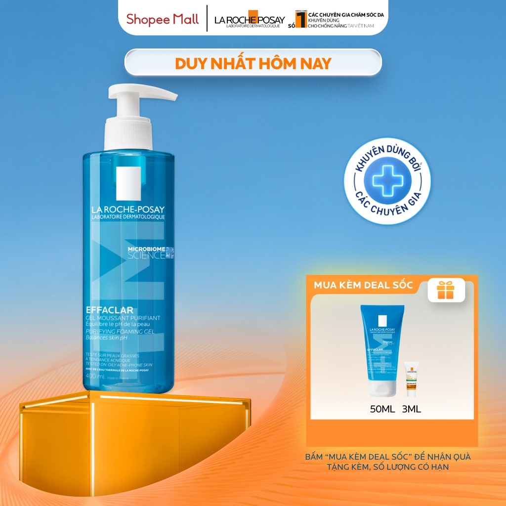 Gel rửa mặt sạch sâu giảm mụn cho da dầu mụn nhạy cảm La Roche-Posay Effaclar Foaming Gel 400ml
