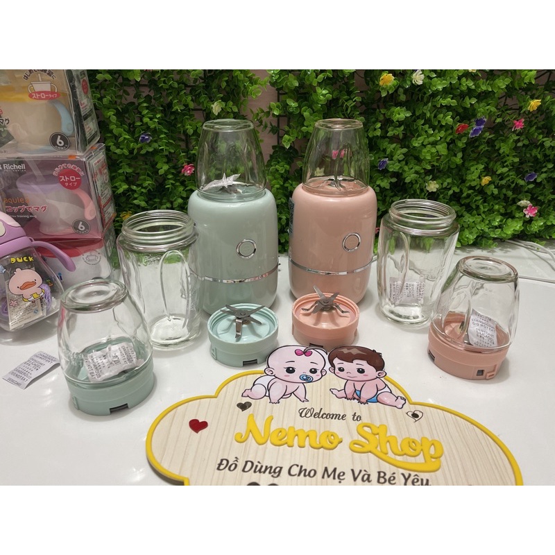 (HOT BẢN 6 LƯỠI) Máy xay 3 cối nội địa Trung bản 6 lưỡi : xanh biển, hồng, xanh navy