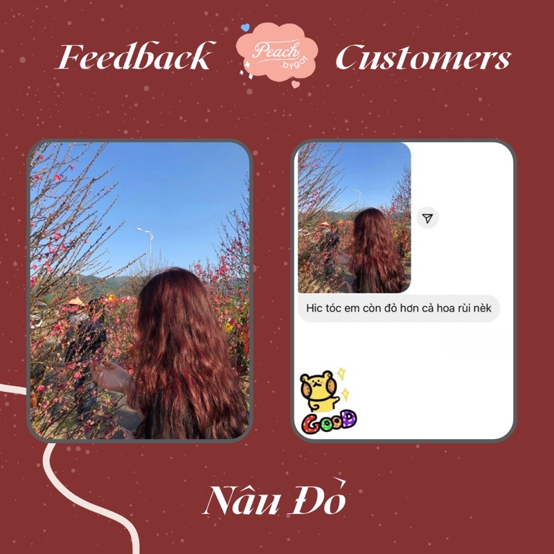 Thuốc nhuộm tóc NÂU ĐỎ không cần dùng thuốc tẩy tóc của Peachbygat , Peach bygat
