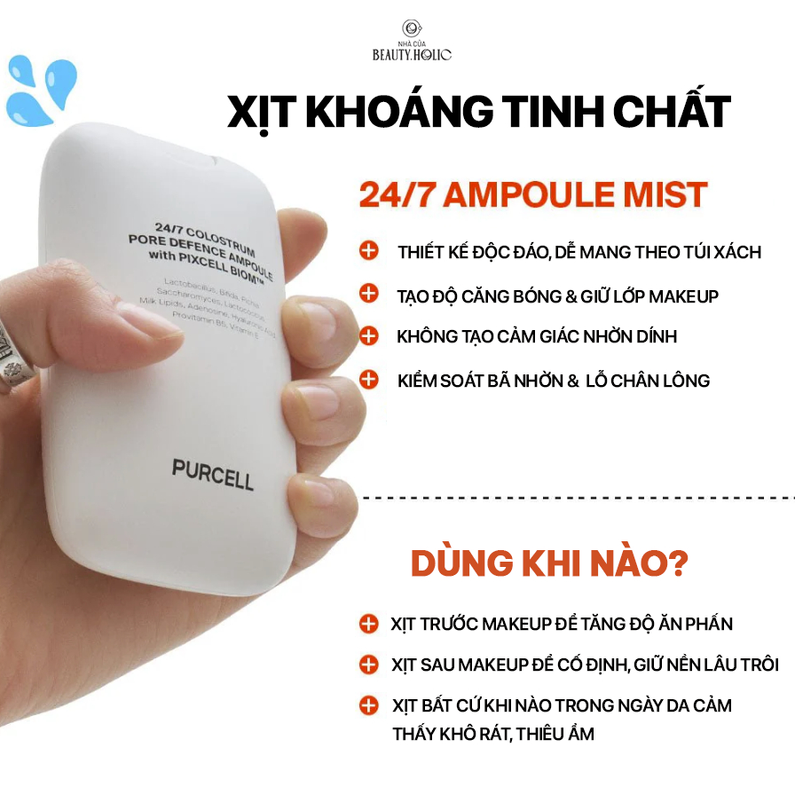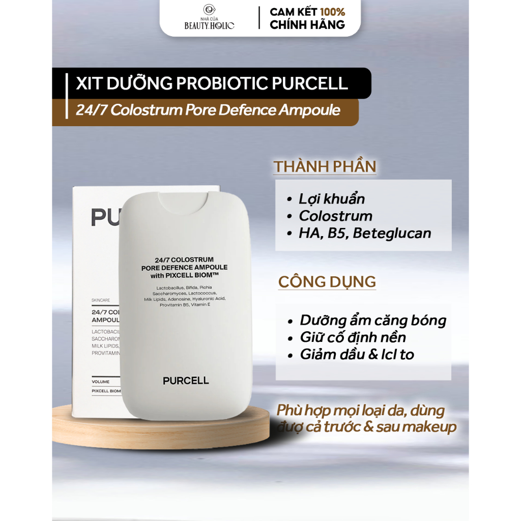 Xịt dưỡng tinh chất dưỡng ẩm căng bóng, chống cakey PURCELL 24/7 COLOSTRUM PORE DEFENCE AMPOULE 55ml