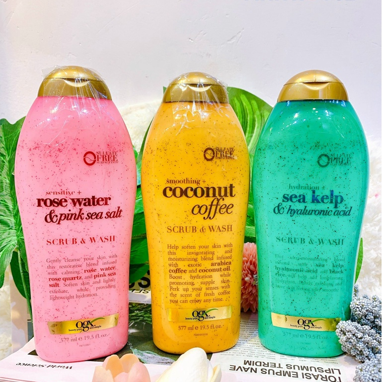 Sữa Tắm Tẩy Tế Bào Chết OGX giúp da mịn màng, trắng sáng 577ml - Mỹ