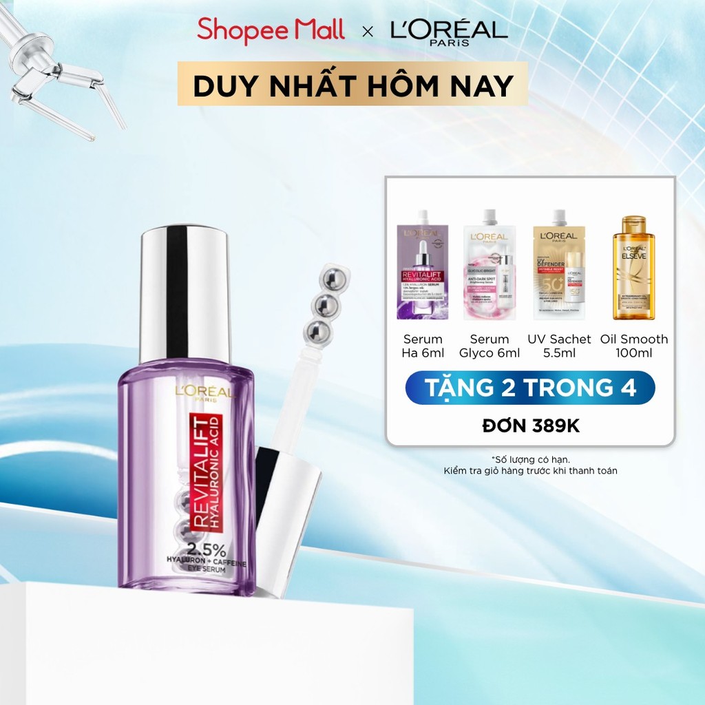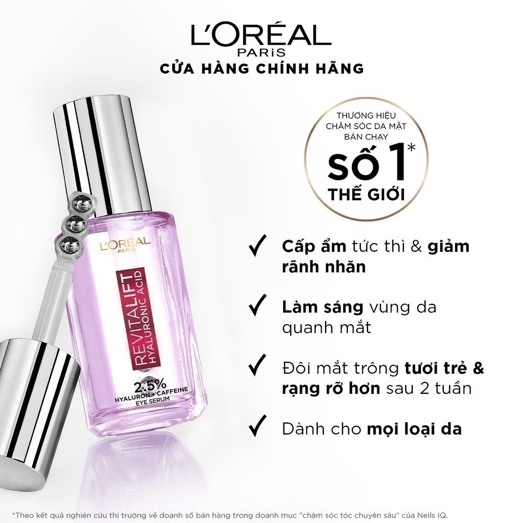 Serum giảm bọng mắt & làm đầy rãnh nhăn L'oreal Paris Revitalift 2.5% Hyaluronic Acid+Caffeine 20ml