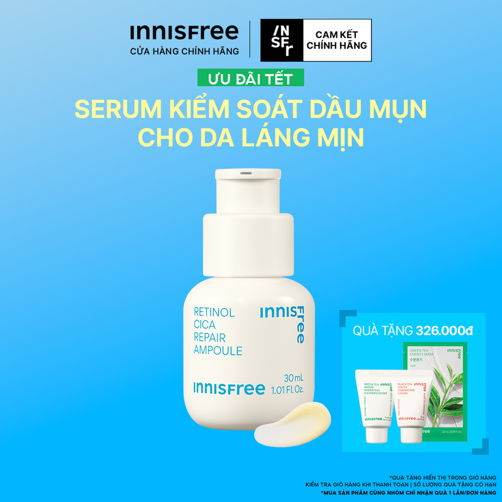 Serum kiểm soát dầu mụn cho da láng mịn INNISFREE Retinol Cica Repair Ampoule 30mL