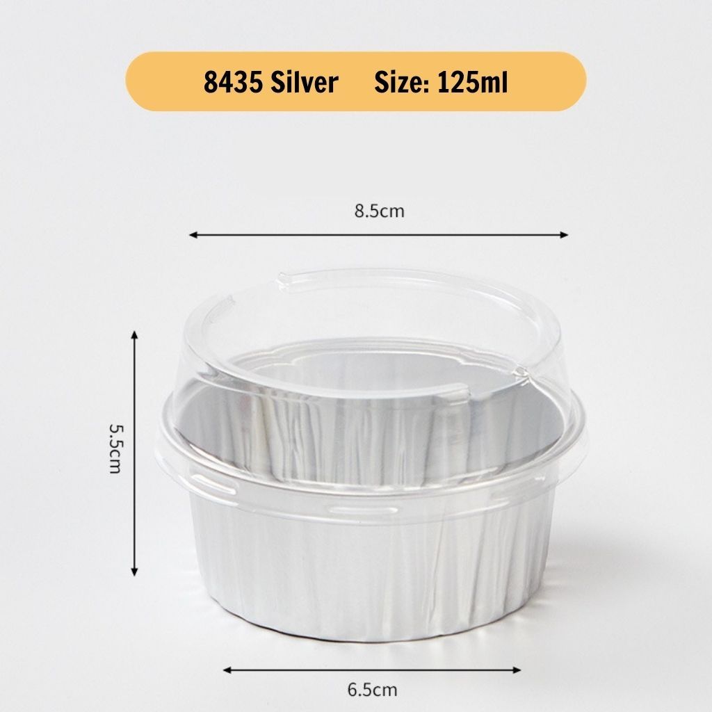 50 Cốc Nhôm Cốc Thiếc Đựng Bánh Flan, Tart Trứng, Tiramisu, Nướng Bánh Trực Tiếp 125ml Tròn Kèm Nắp Trong [8435]