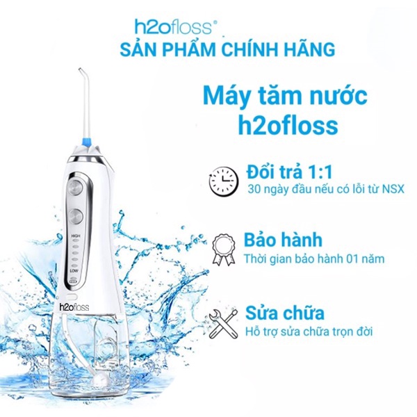 Máy tăm nước h2ofloss HF-6P Nhập khẩu chính hãng, Tem bảo hành trên thân máy. Máy vệ sinh răng miệng cầm tay du lịch