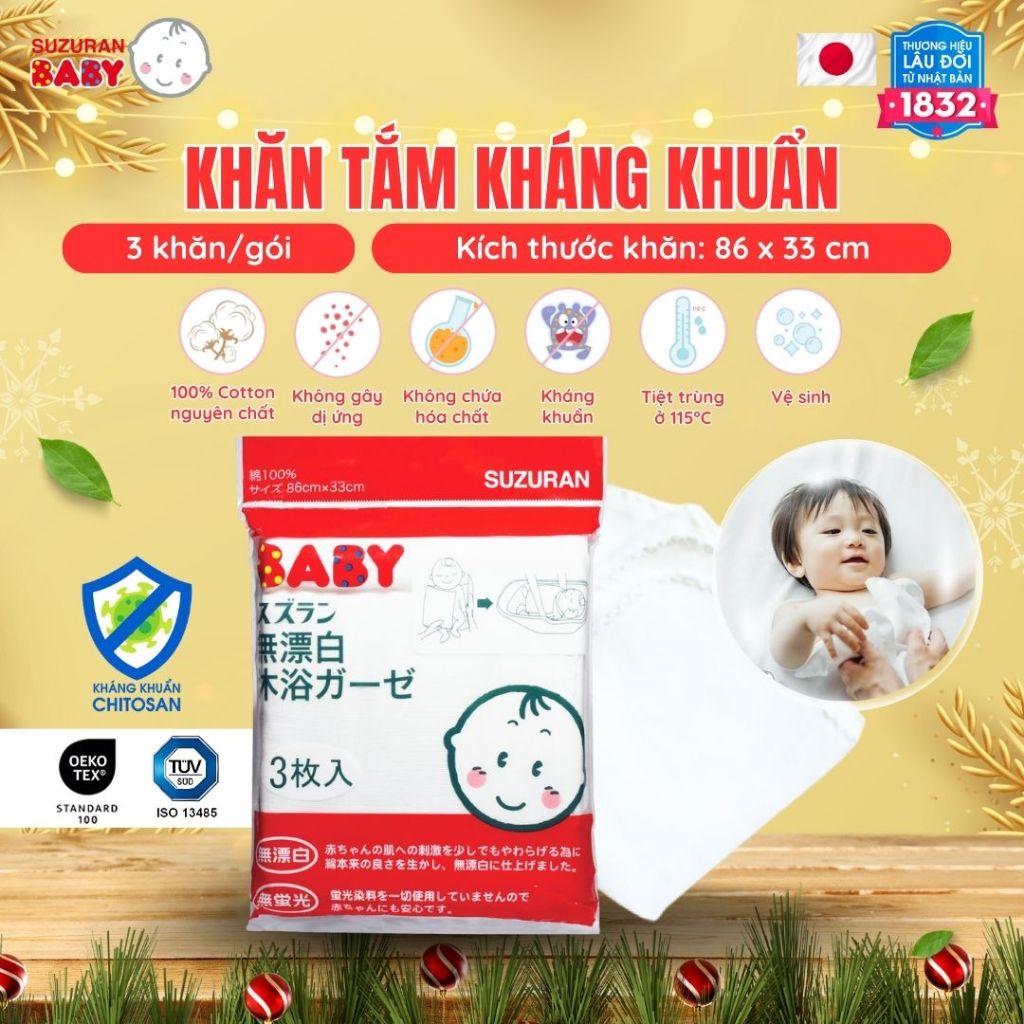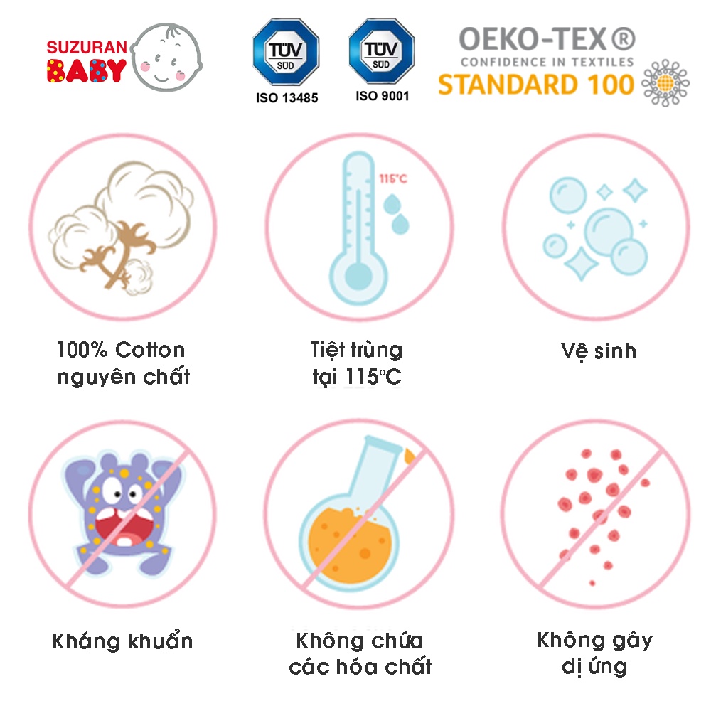 Khăn sữa Chitosan kháng khuẩn Suzuran Japan - 10 cái/gói