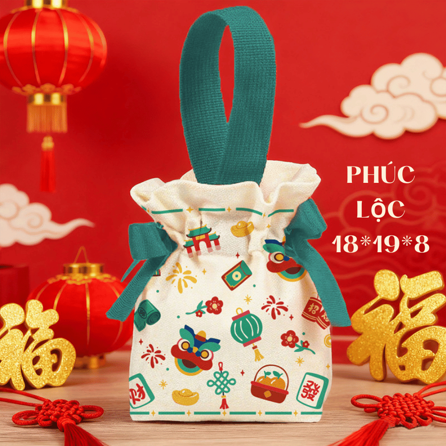 Túi 2026 Vải Rút Thắt Nơ Canvas Họa Tiết Tết Nguyên Đán, Năm Mới Đựng Quà Trang Trí - BAKERY KING