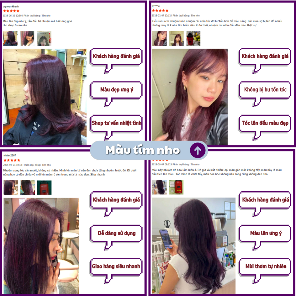 EASYSEVEN Dầu Gội Nhuộm Tóc Phủ Bạc MÀU TÍM NHO 400ml - Thảo Dược An Toàn, Phủ Màu Tự Nhiên