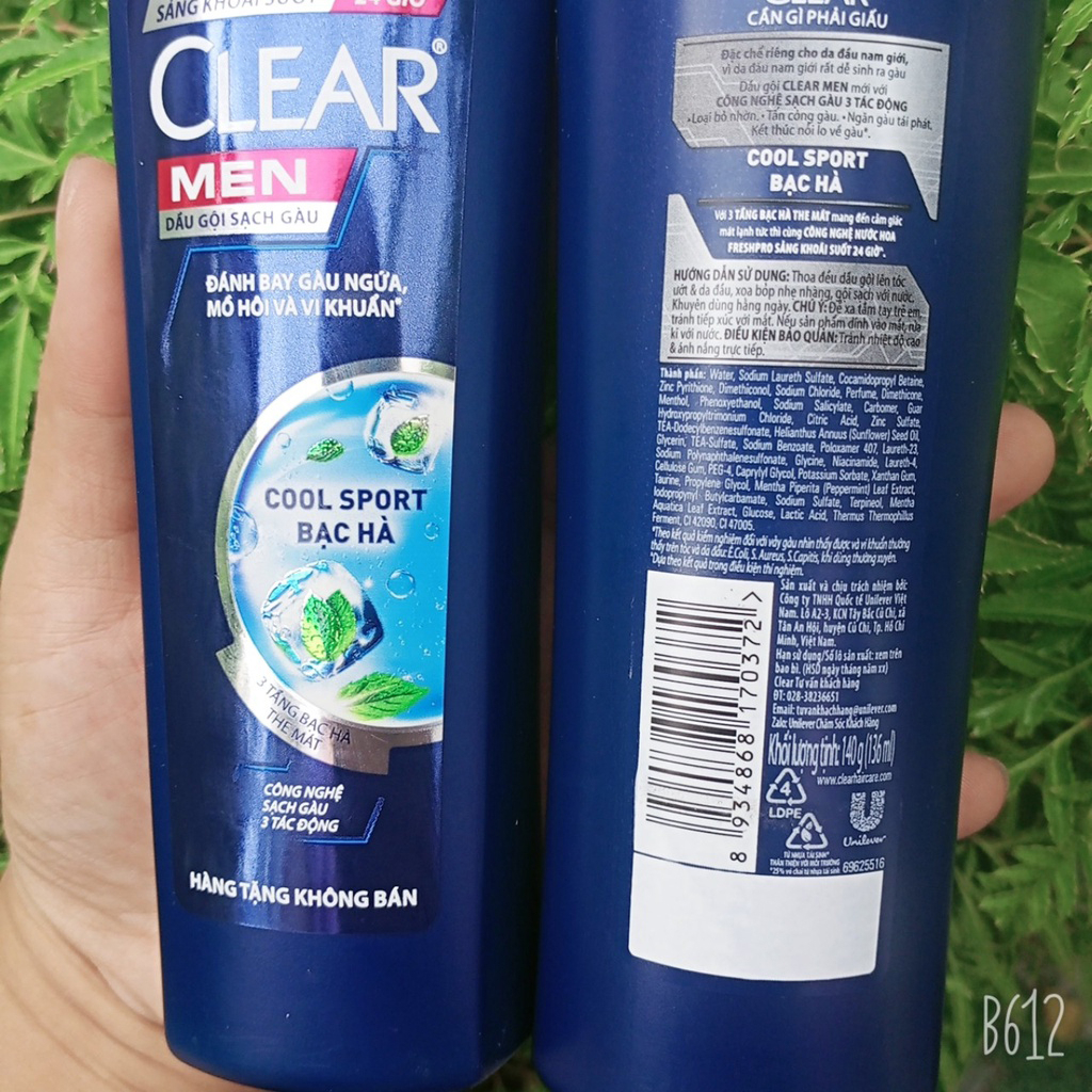 Dầu gội đầu Clear Men sạch gàu. Dầu gội Clear men Bạc hà mát lạnh/ Sạch sâu/Sạch Gàu 140g ( hàng khuyến mãi)