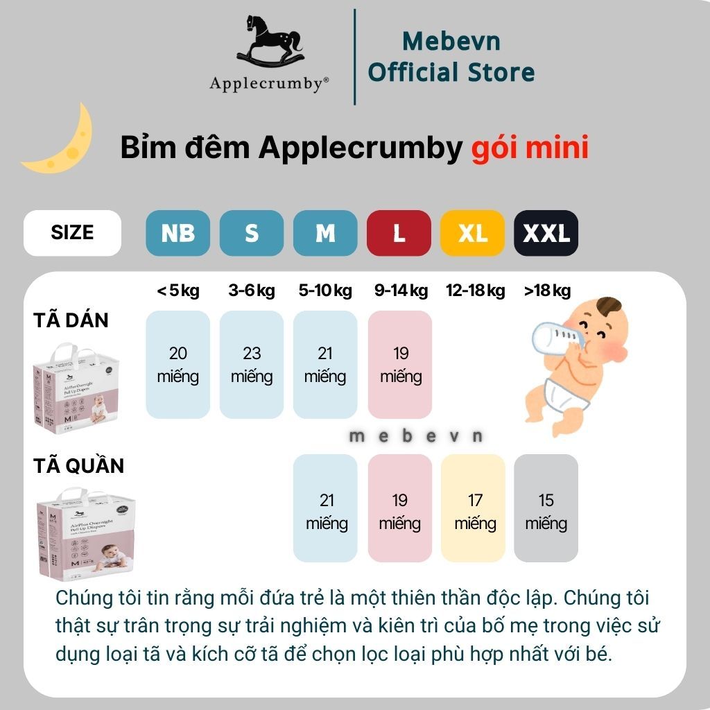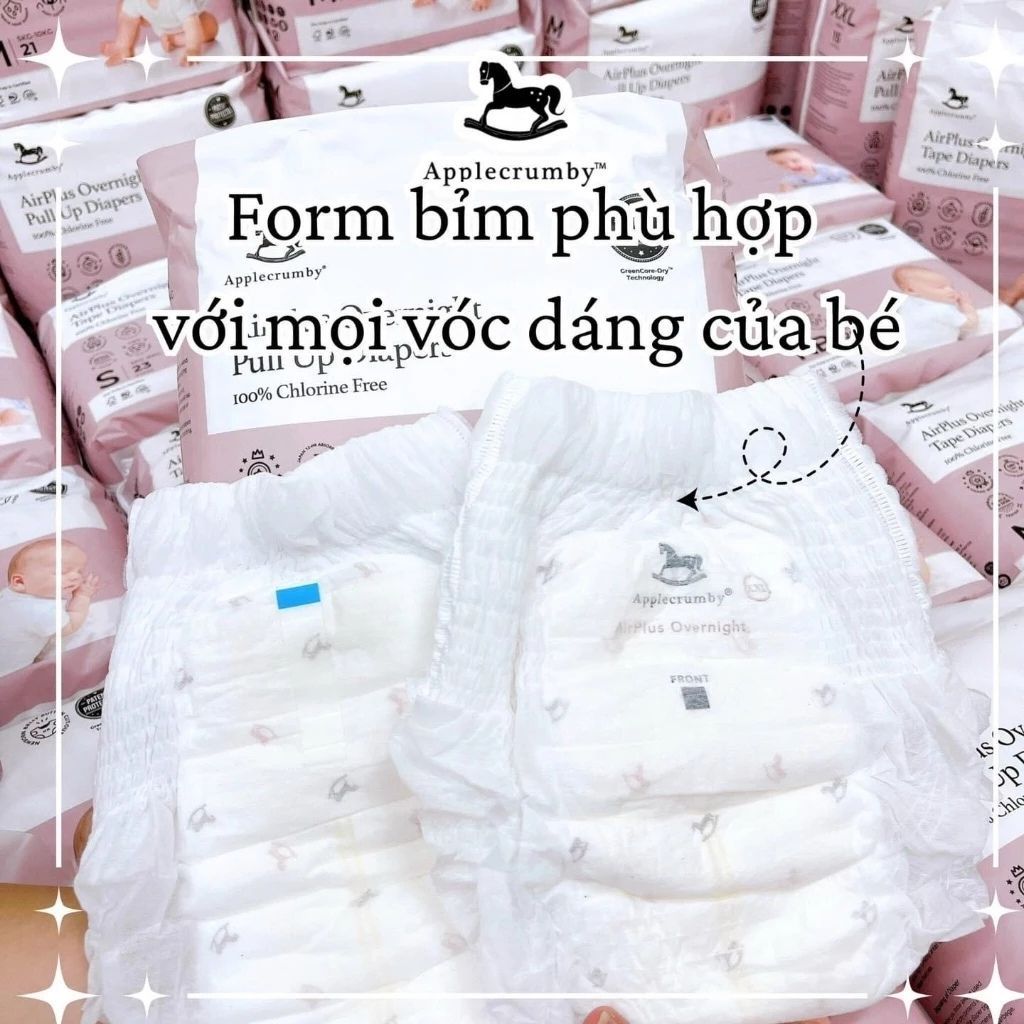 Bỉm đêm Applecrumby Overnight chính hãng, bỉm applecrumby overnight cho bé đủ size NB/S/M/L/XL/XXL