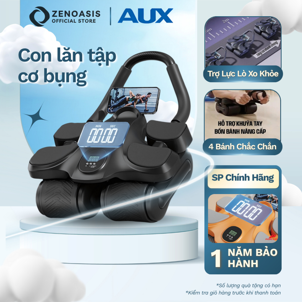 Con Lăn Tập Bụng 4 Bánh Mẫu Mới Nhất 2025 Màn Hình LCD Sắc Nét Lò Xo Trợ Lực Tập Tại Nhà Tặng Kê Gối