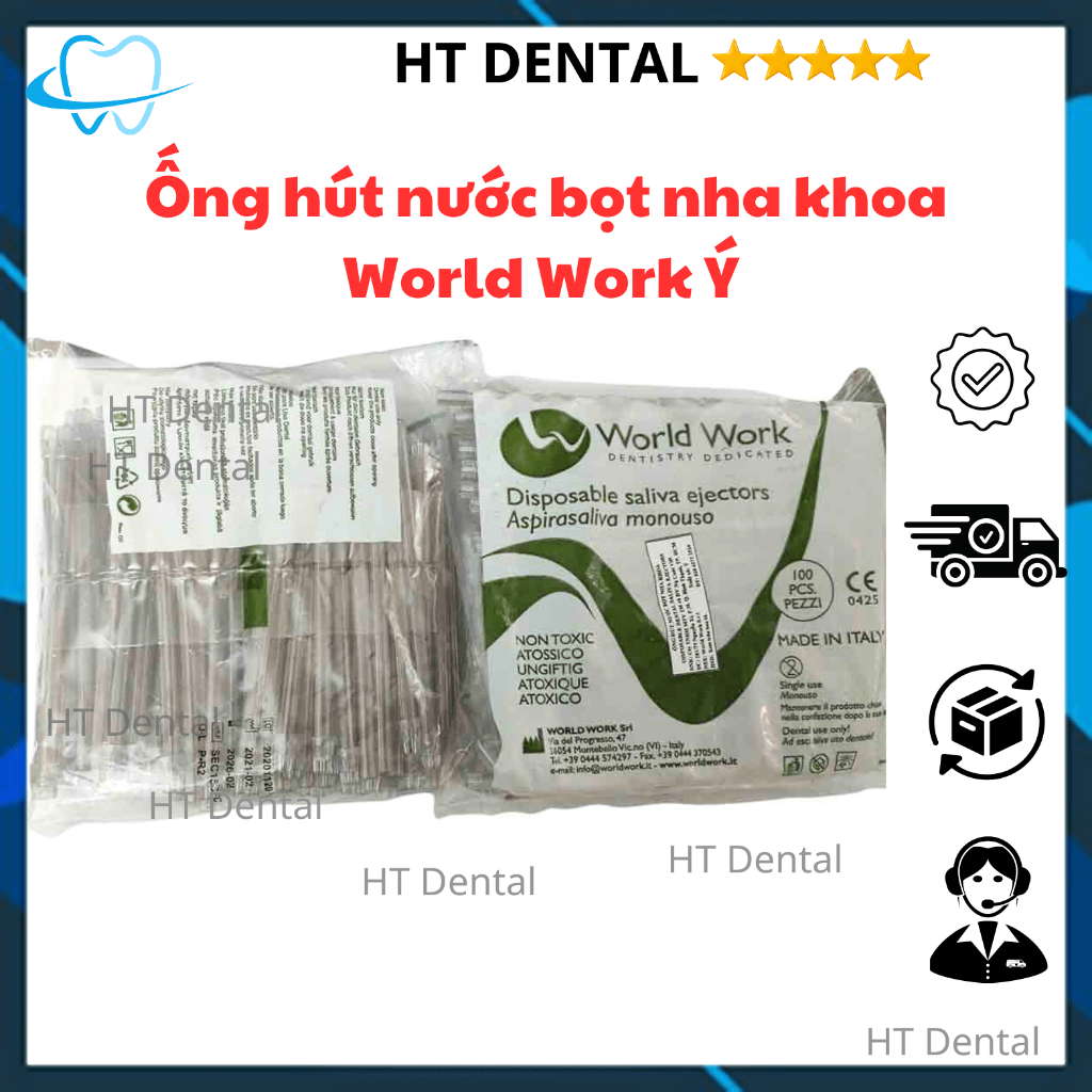 [100 cái/túi] Ống Hút Nước Bọt Nha Khoa World Work Ý – HT Dental