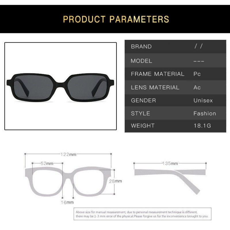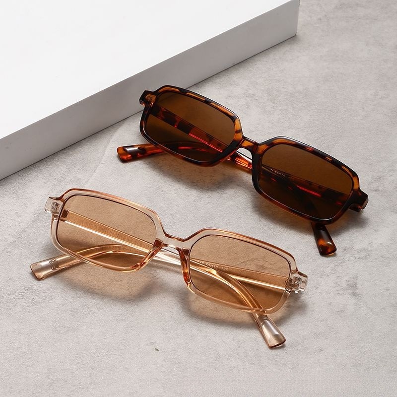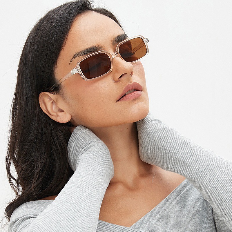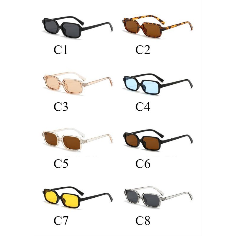 (Jiuerba) Kính râm khung nhỏ hình chữ nhật trong suốt Xu hướng thời trang Kính râm chống tia cực tím đầy màu sắc